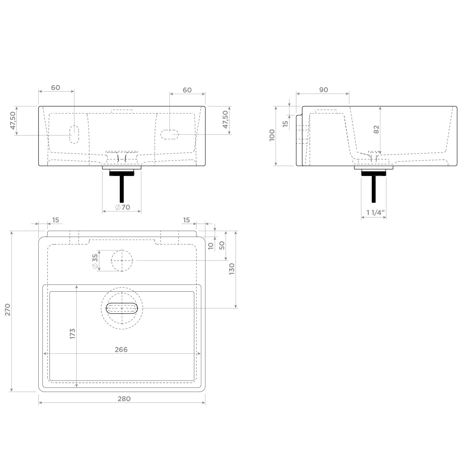 - Zum Lieferumfang gehört standardmäßig eine verchromte Ablaufgarnitur. Andere Farben müssen separat bestellt werden; siehe Zubehör.