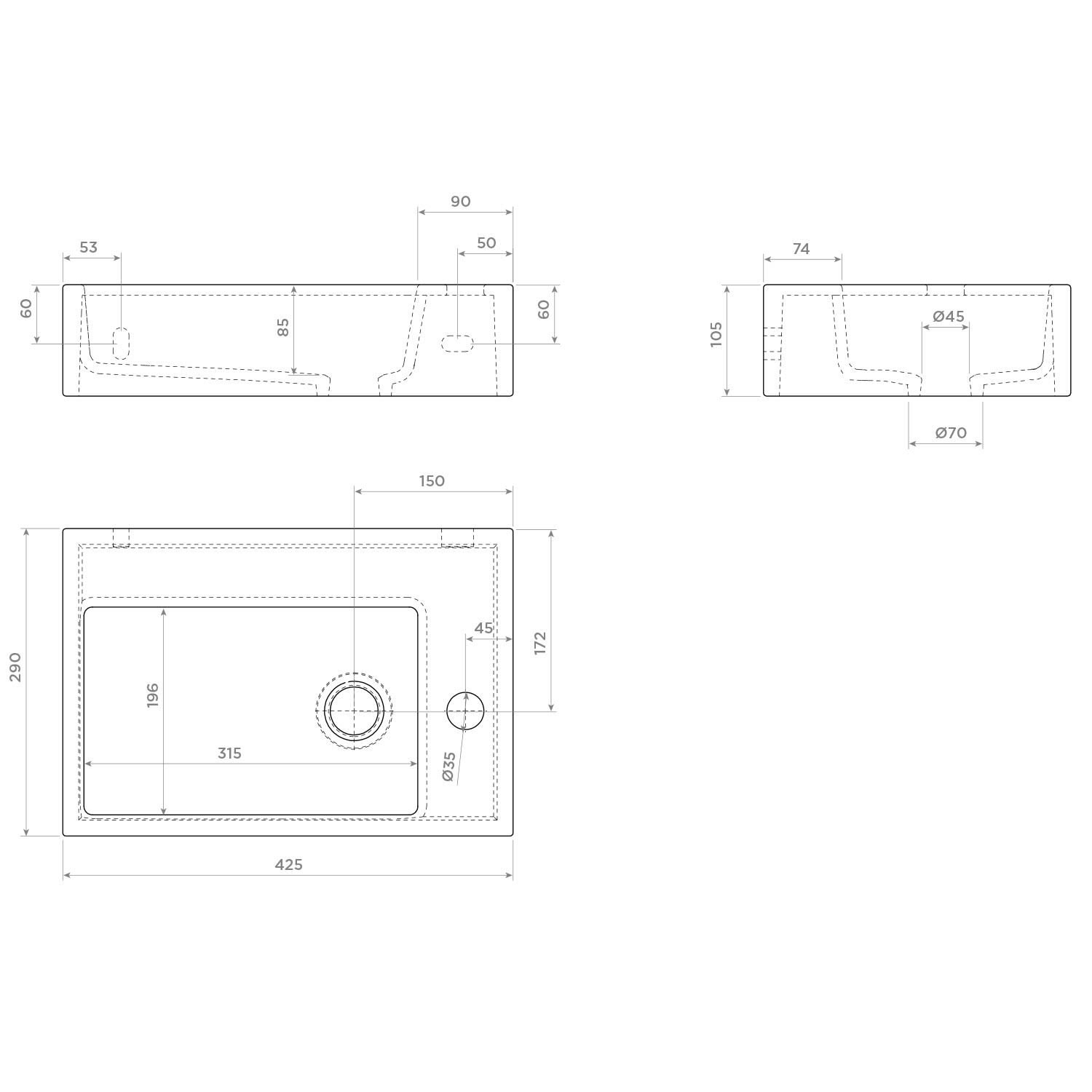 Clou New Flush 2 Plus Keramik-Handwaschbecken 42,5 x 29 cm mit Hahnloch rechts