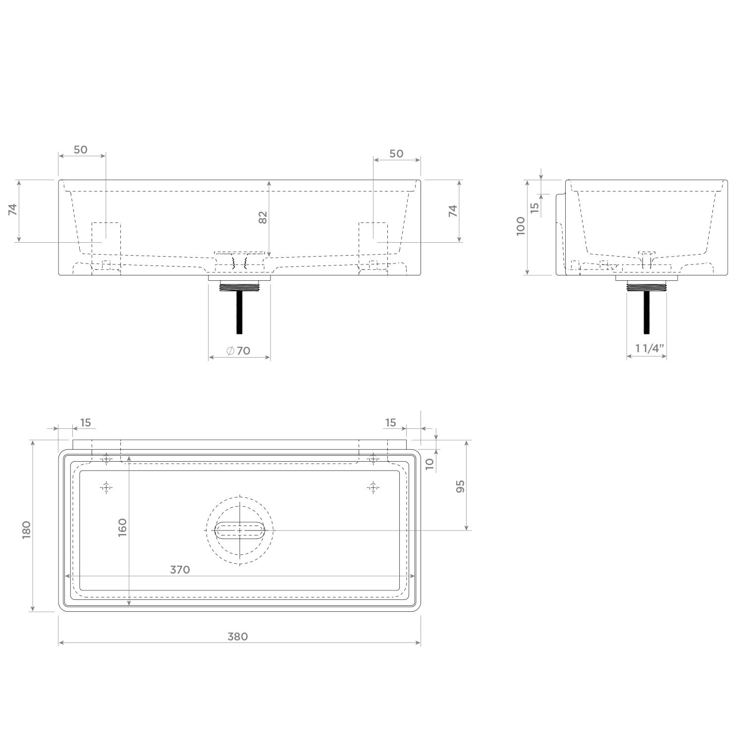 Clou New Flush 3.1 Aluite-Handwaschbecken 38 x 18 cm ohne Hahnloch