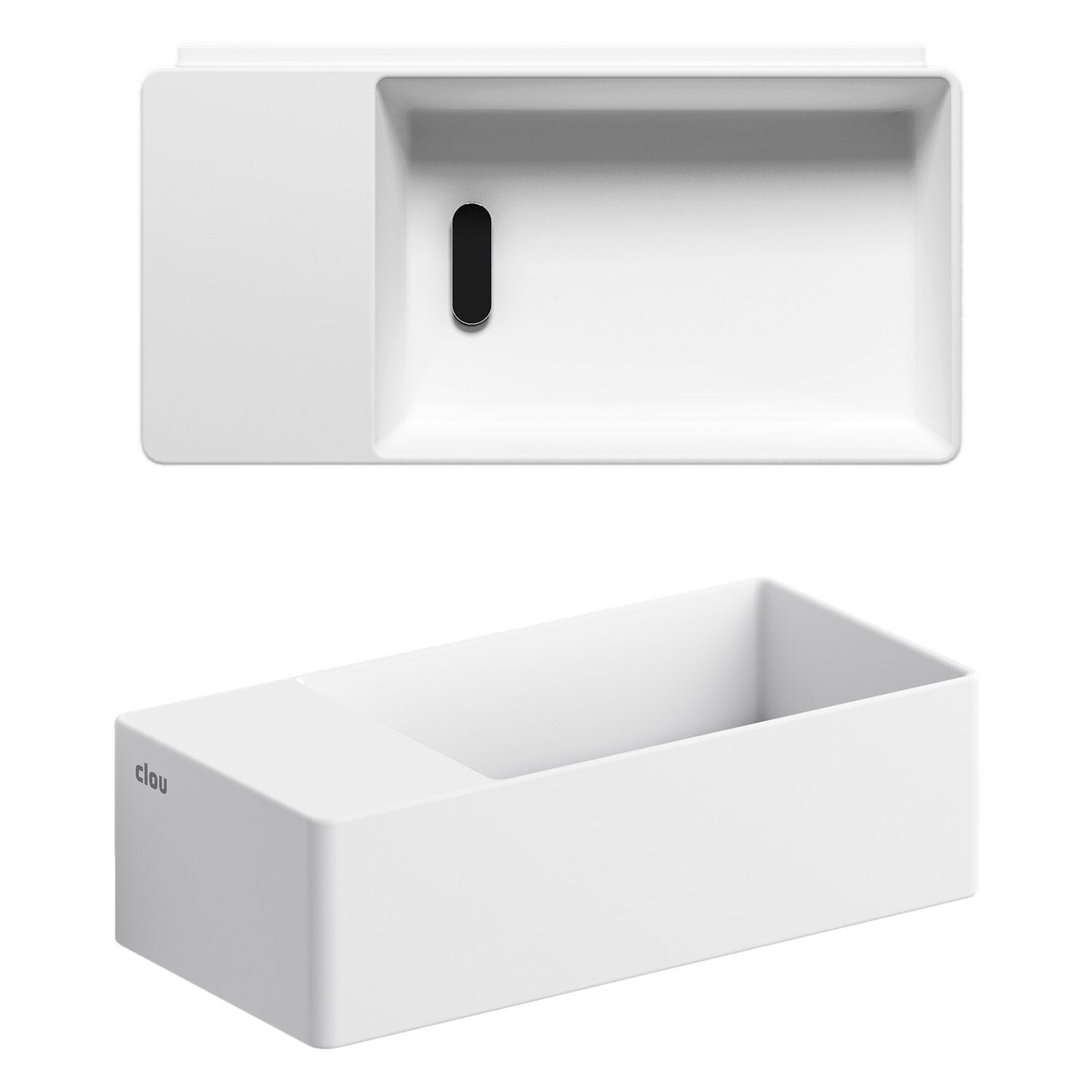 Clou New Flush 3 Left Aluite-Handwaschbecken 35 x 18 cm mit vorgestochenem Hahnloch links