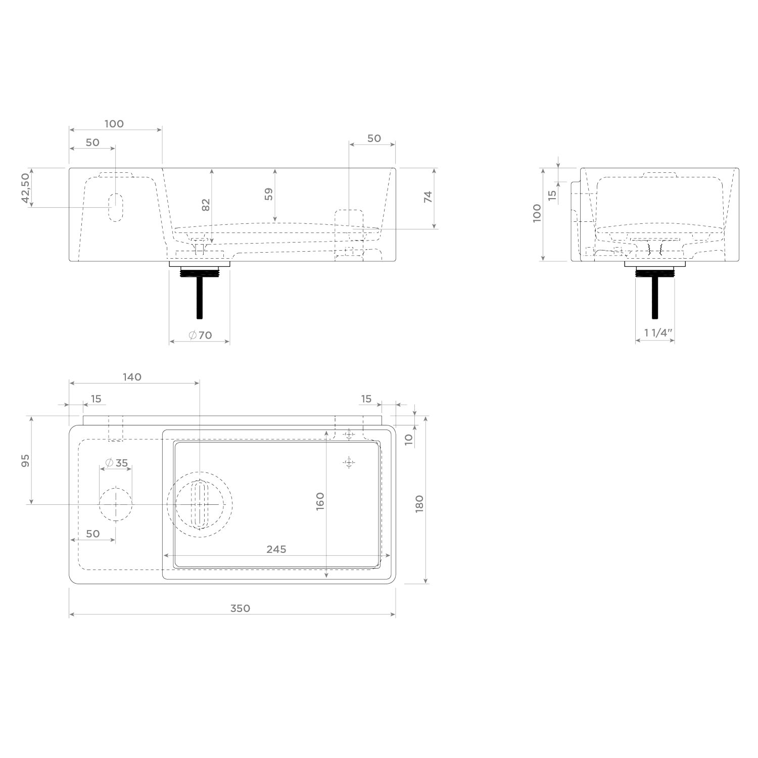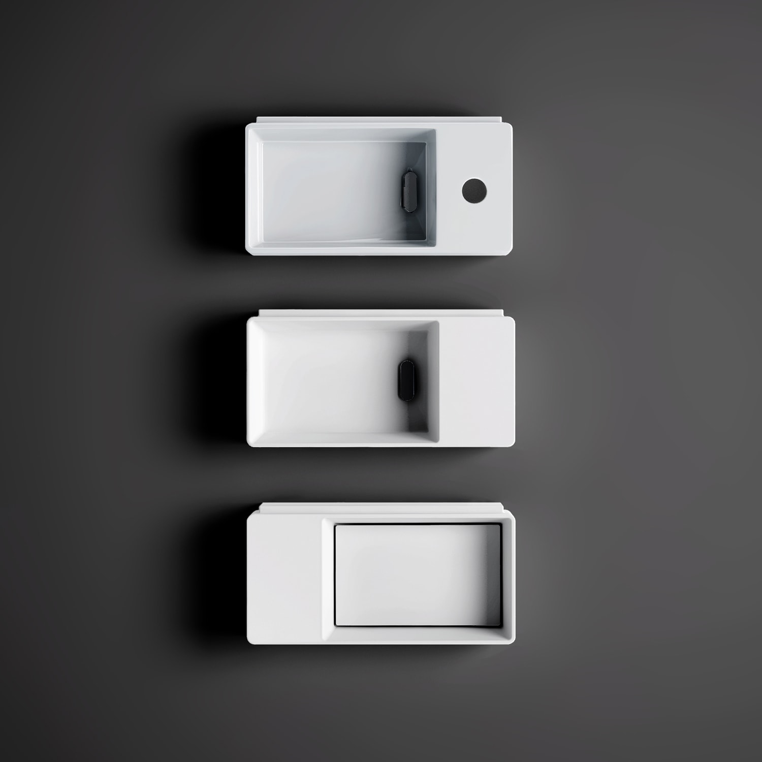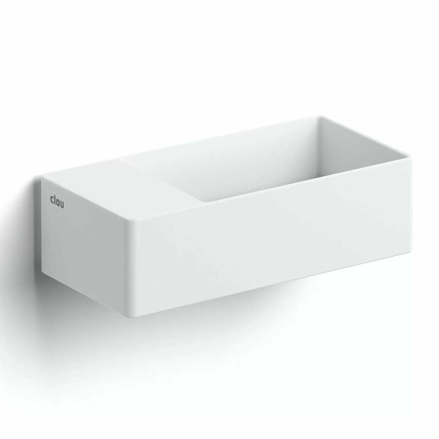 Clou New Flush 3 Left Aluite-Handwaschbecken 35 x 18 cm mit vorgestochenem Hahnloch links und Ablaufplatte