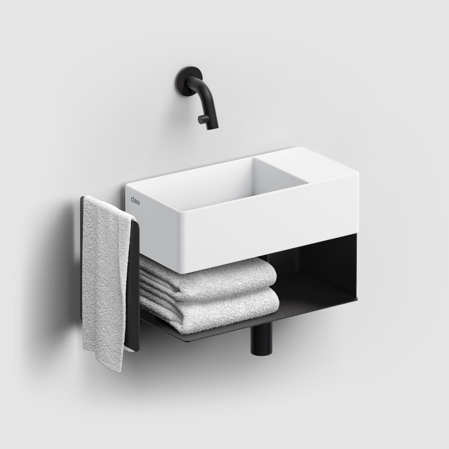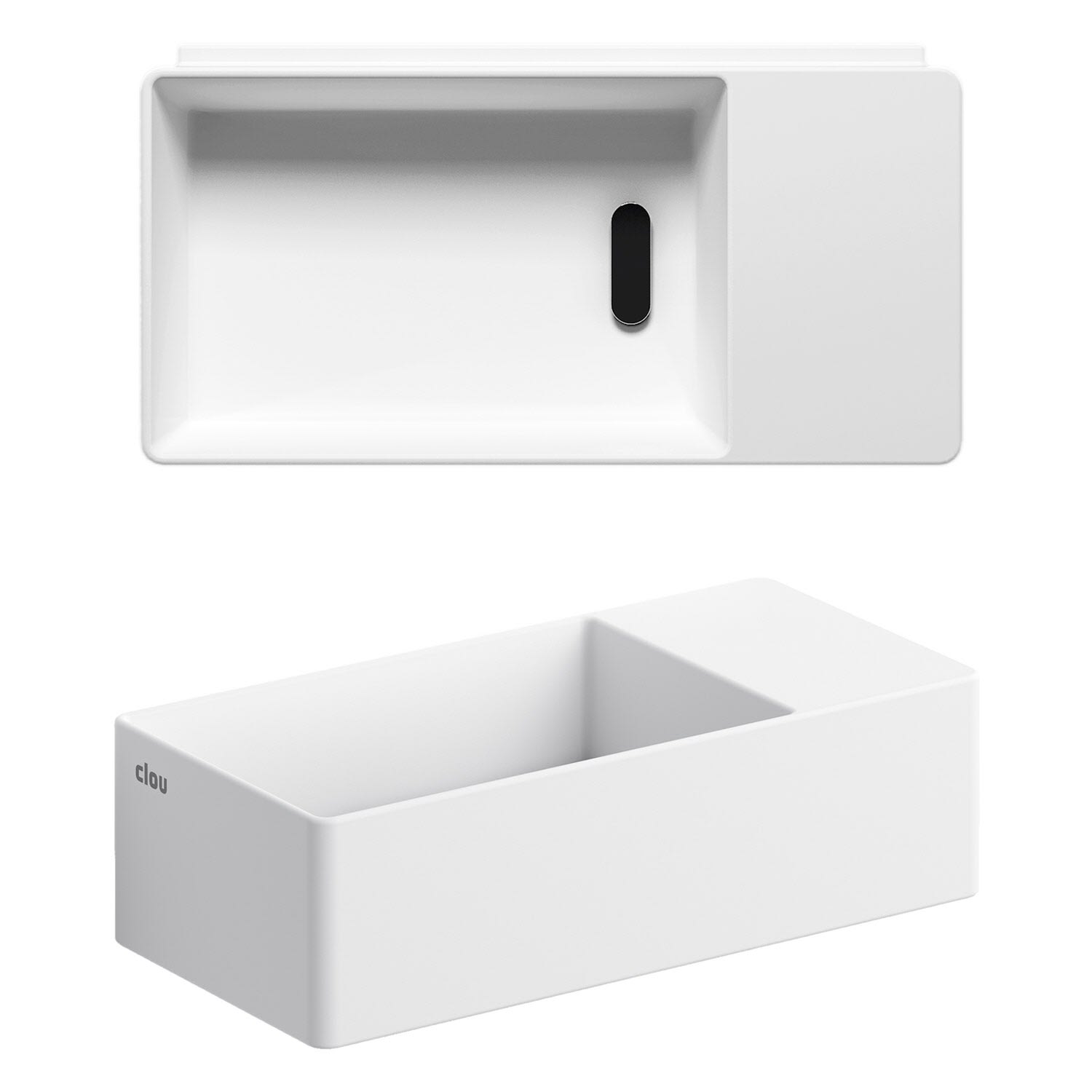 Clou New Flush 3 Right Aluite-Handwaschbecken 35 x 18 cm mit vorgestochenem Hahnloch rechts