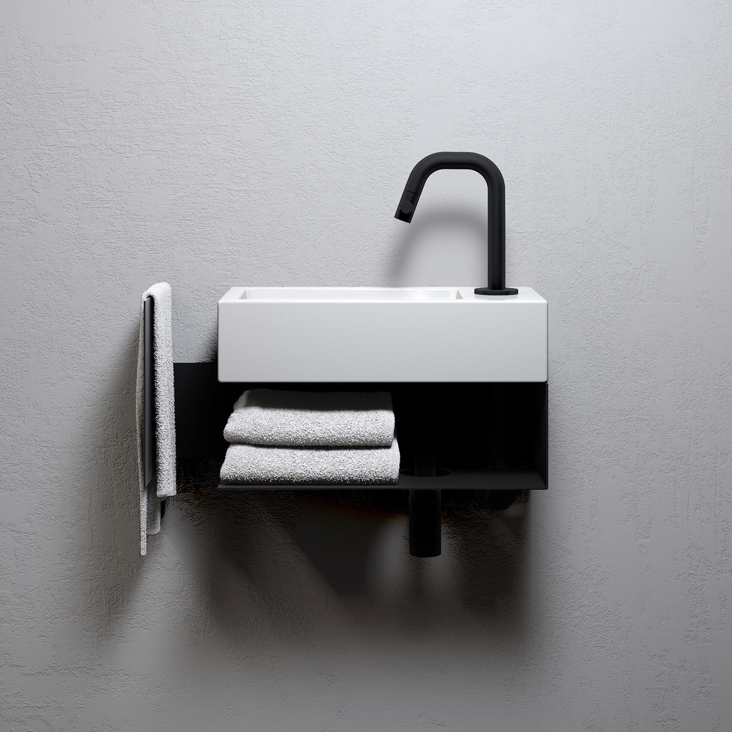Kronenbach Stone Handwaschbecken 38 x 19 cm Becken links ohne Hahnlochbohrung, mit Handtuchhalterung