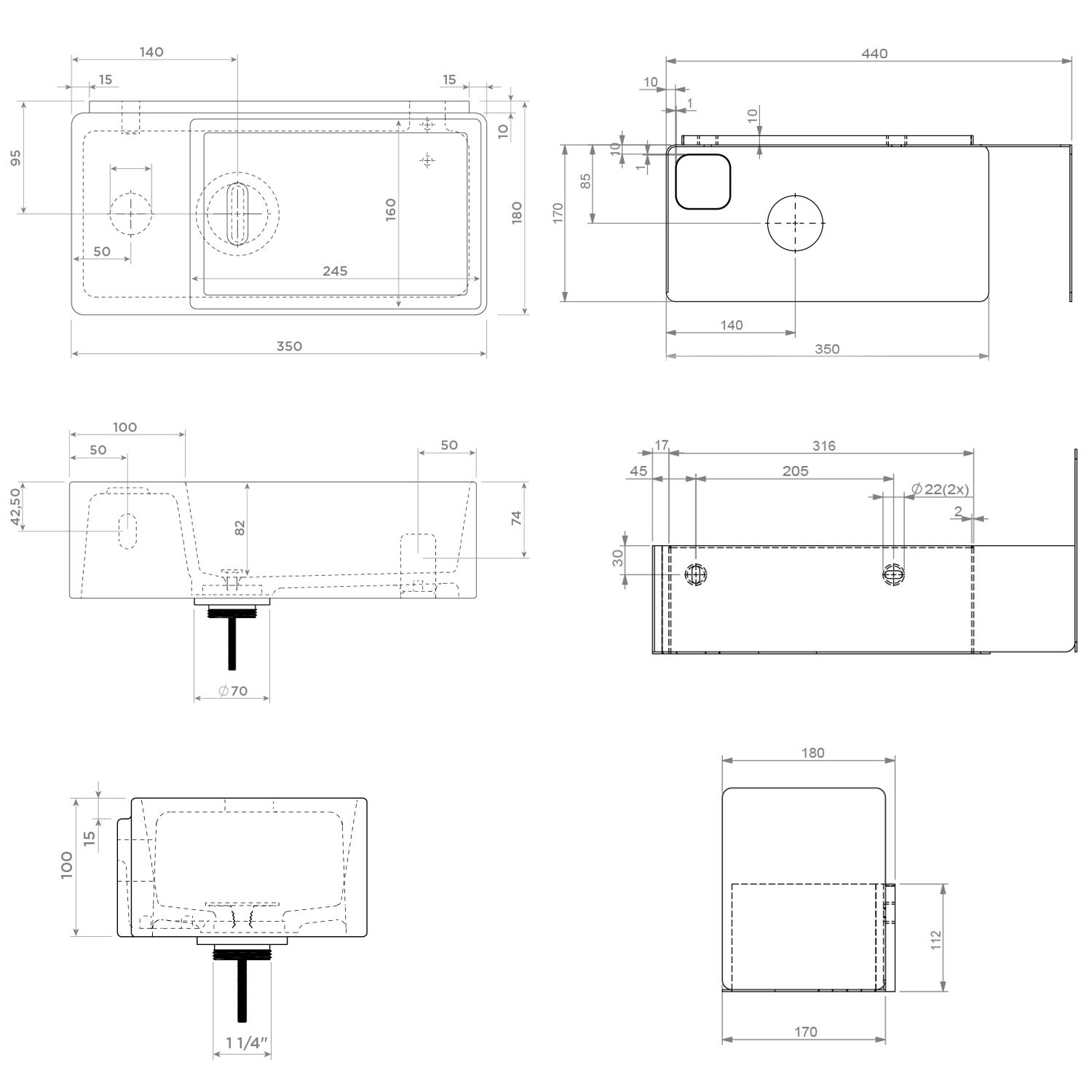 Clou New Flush 3 Left Aluite - Handwaschbecken 35 cm mit offenem Unterschrank