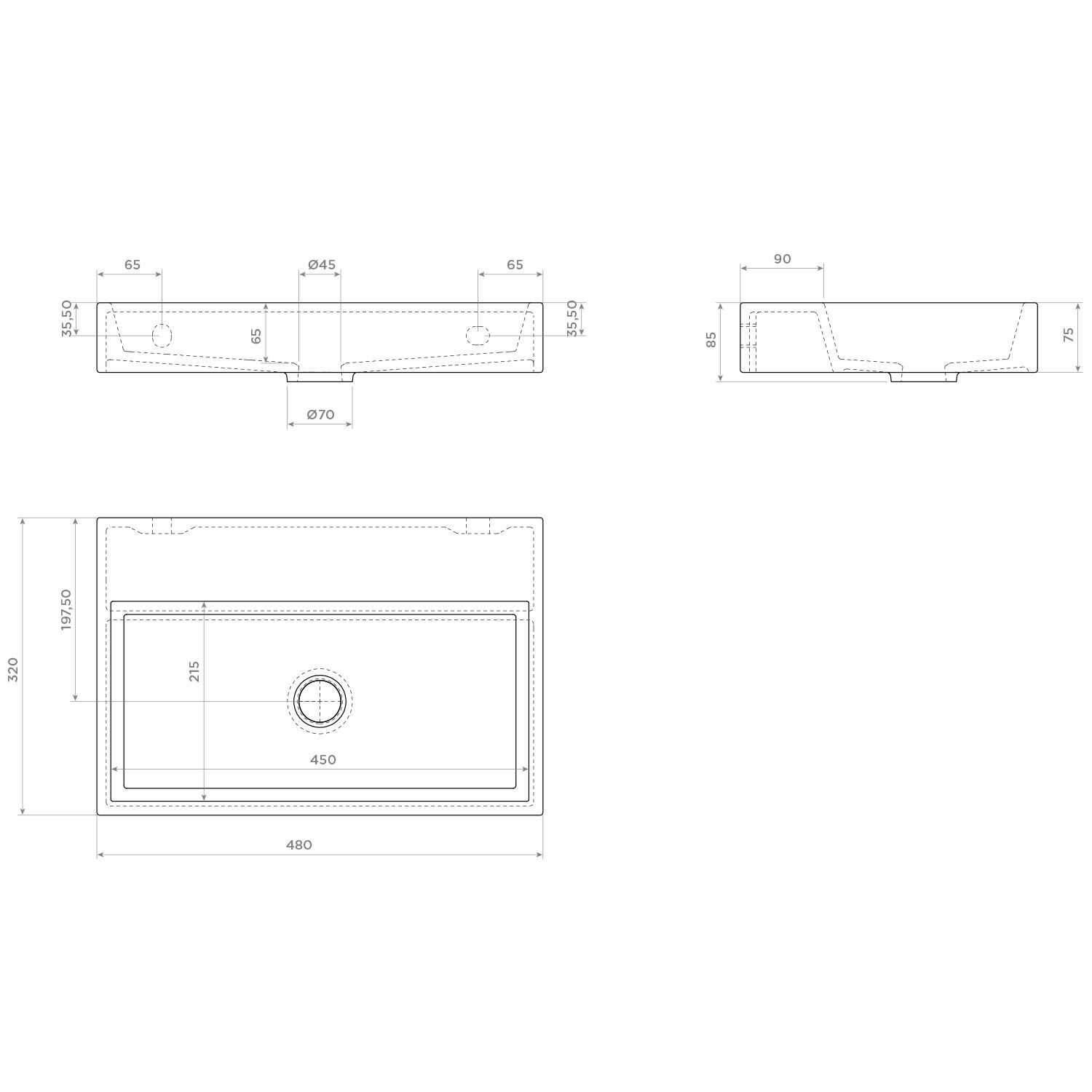 - Plus Handwaschbecken ohne Hahnloch