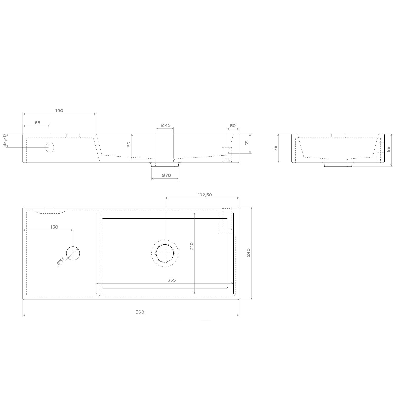 Clou Mini Wash Me Plus Left Keramik - Handwaschbecken 56 cm mit Hahnloch links