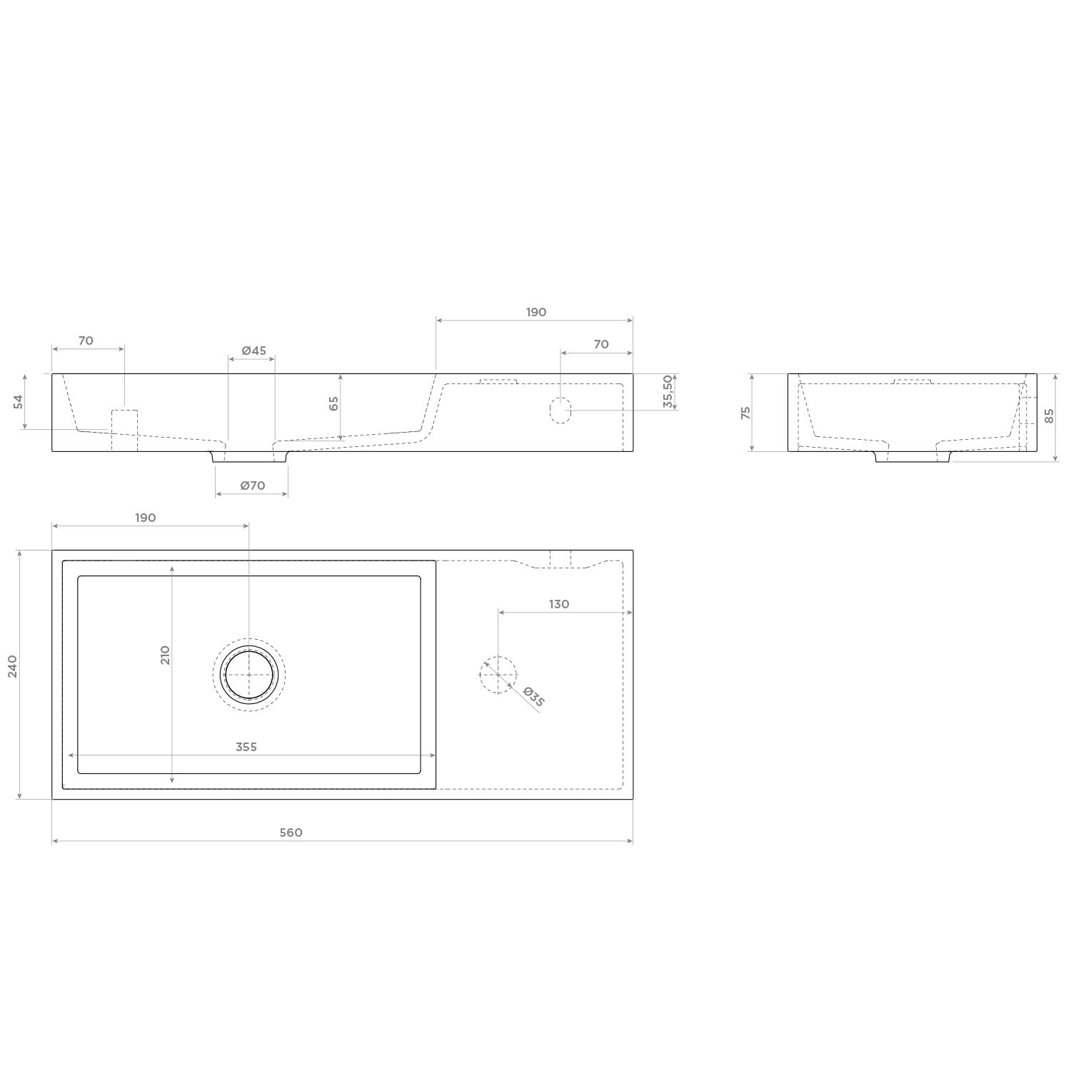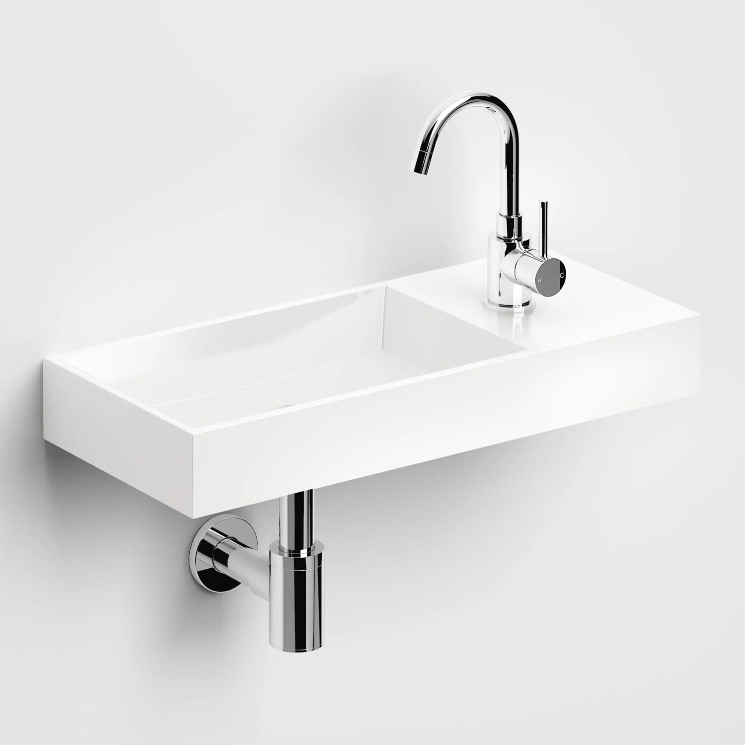 Clou Mini Wash Me Plus Right Mineralmarmor - Handwaschbecken 56 cm ohne Hahnloch