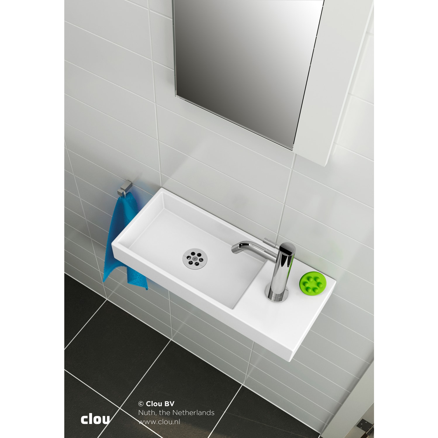 Die Mini Wash Me Handwaschbecken sind nur mit den Ablaufgarnituren von Clou (siehe Zubehör) kompatibel.