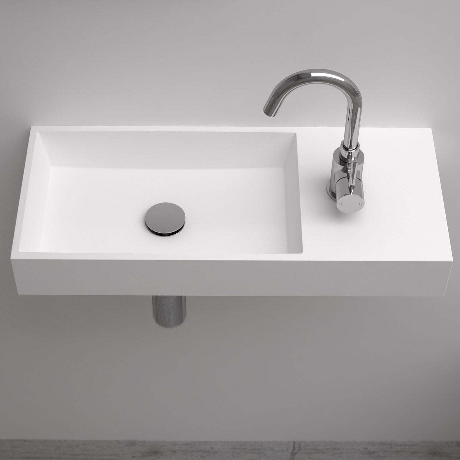 - Plus Handwaschbecken mit 1 vorgestochenen Hahnloch rechts