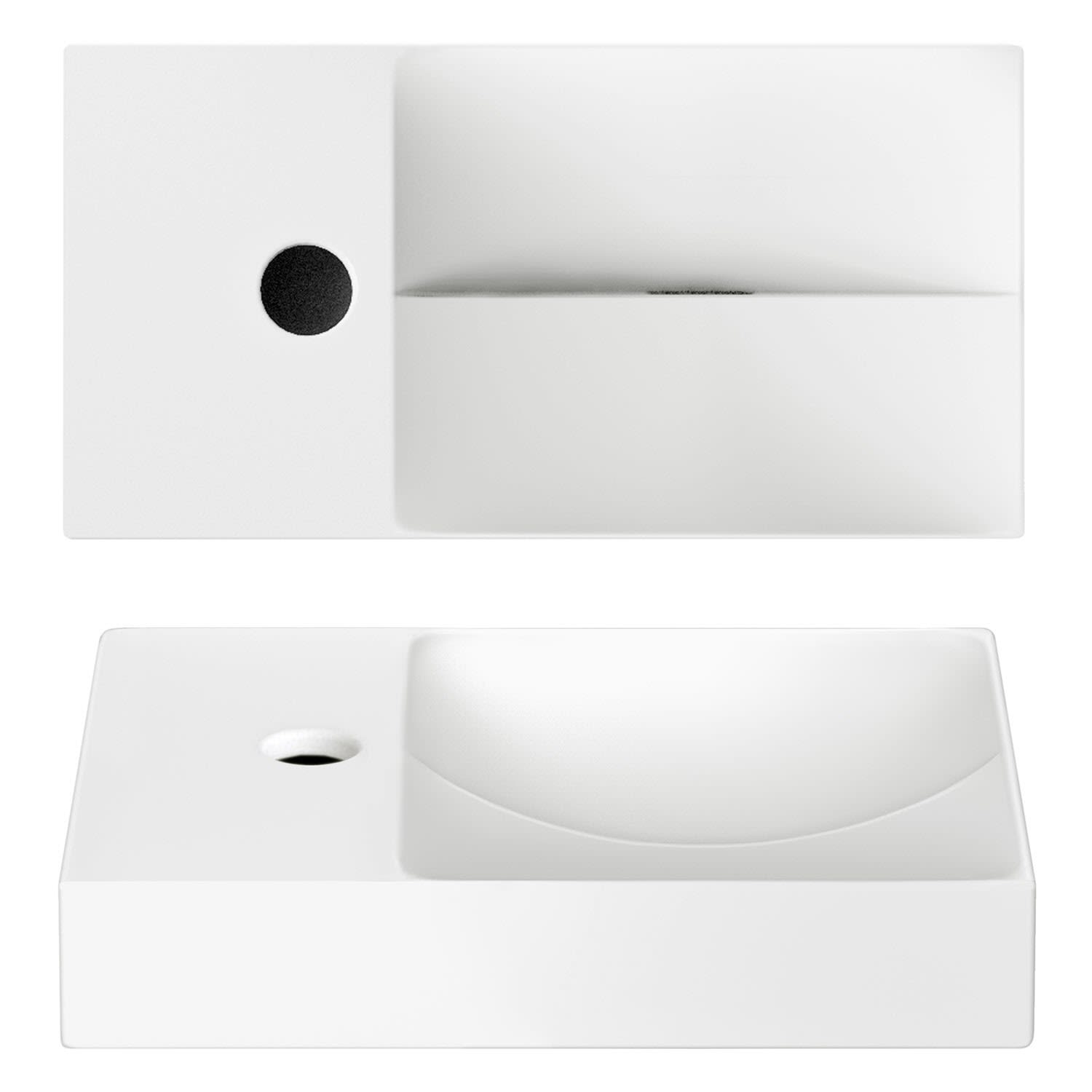 - Handwaschbecken mit Hahnloch links