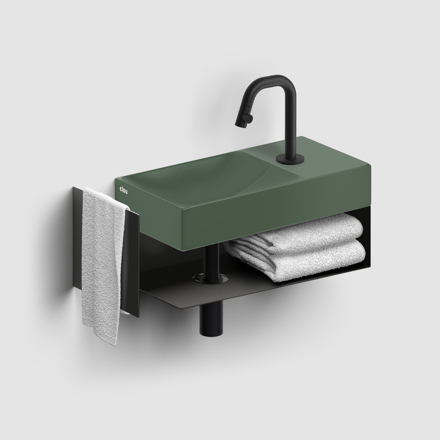 Zwei Ebenen, zwei Kurven mit unterschiedlichen Höhen. Ein einfallsreiches Design sorgt dafür, dass Wasser ordentlich abfließt. Keine Ablaufgarnitur erforderlich. An die Ablaufplatte am Boden des Handwaschbeckens kann jeder handelsübliche Siphon montiert werden.