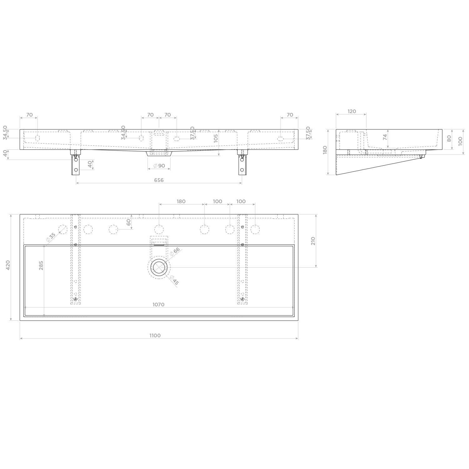 - Waschtisch mit 7 vorgestochenen Hahnlöchern