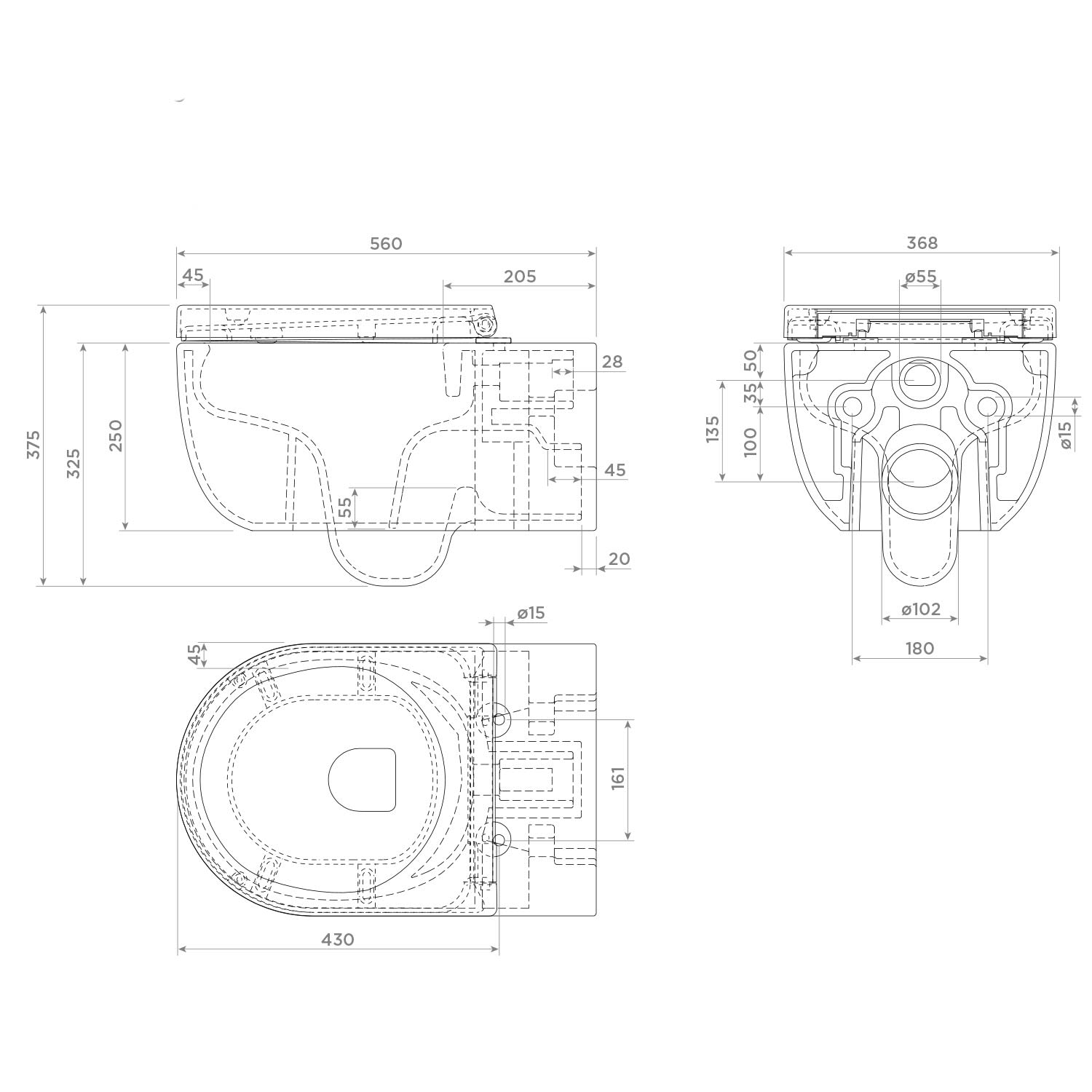 ALLUVION Mars Wand-WC kompakt Tiefspüler ohne Spülrand inkl. WC-Sitz
