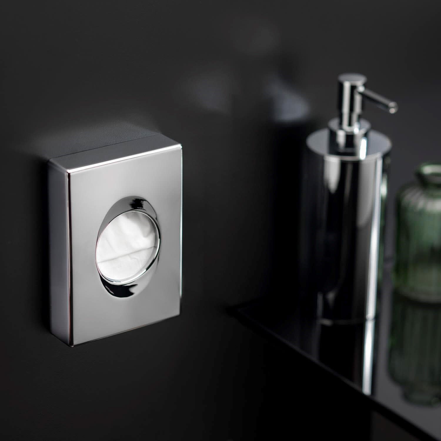 Der Beutelspender ist Teil der Architect-Kollektion von Cosmic. Der von Cosmic Studio entworfene Vorschlag ist eine komplette Sammlung von Badzubehör mit einem zeitlosen und eleganten Design. Cosmic ist eine Marke, die sich auf Designer-Badzubehör und Möbel spezialisiert hat.