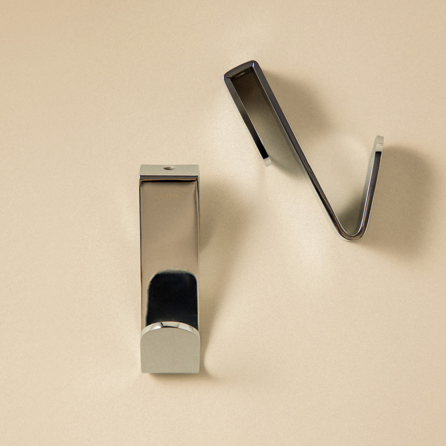 Zwei praktische Haken sind ein praktisches Set, das keine Installation erfordert. Außerdem ist die Oberfläche aus Chrom 3, d.h. dreiwertigem Chrom, einem umweltfreundlichen und sehr widerstandsfähigen Produkt. Diese Haken gehören zu der Kollektion Architect S+, die von Cosmic Studio mit dem Ziel entwickelt wurde, eine Kollektion mit maximaler Funktionalität anzubieten. Cosmic ist eine Marke, die sich auf Designer-Bad-Accessoires und -Möbel spezialisiert hat, die sich durch Innovation und die Verwendung neuer Materialien auszeichnen, sowie durch die Suche nach dem Wohlbefinden des Badbenutzers. Haken aus rostfreiem Stahl, dreifach verchromt. Produkt mit 10 Jahren Garantie. Verwenden Sie zur Reinigung Seifenwasser. Mit reichlich Wasser abspülen und mit einem weichen Tuch oder Fensterleder trocknen. Verwenden Sie niemals starke Produkte, die Säuren, Bleichmittel oder Scheuermittel enthalten.