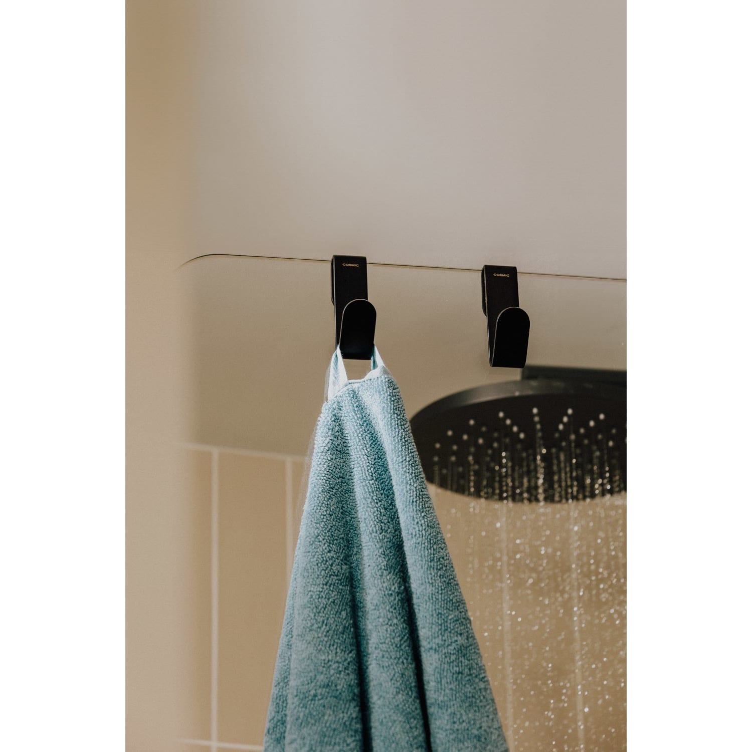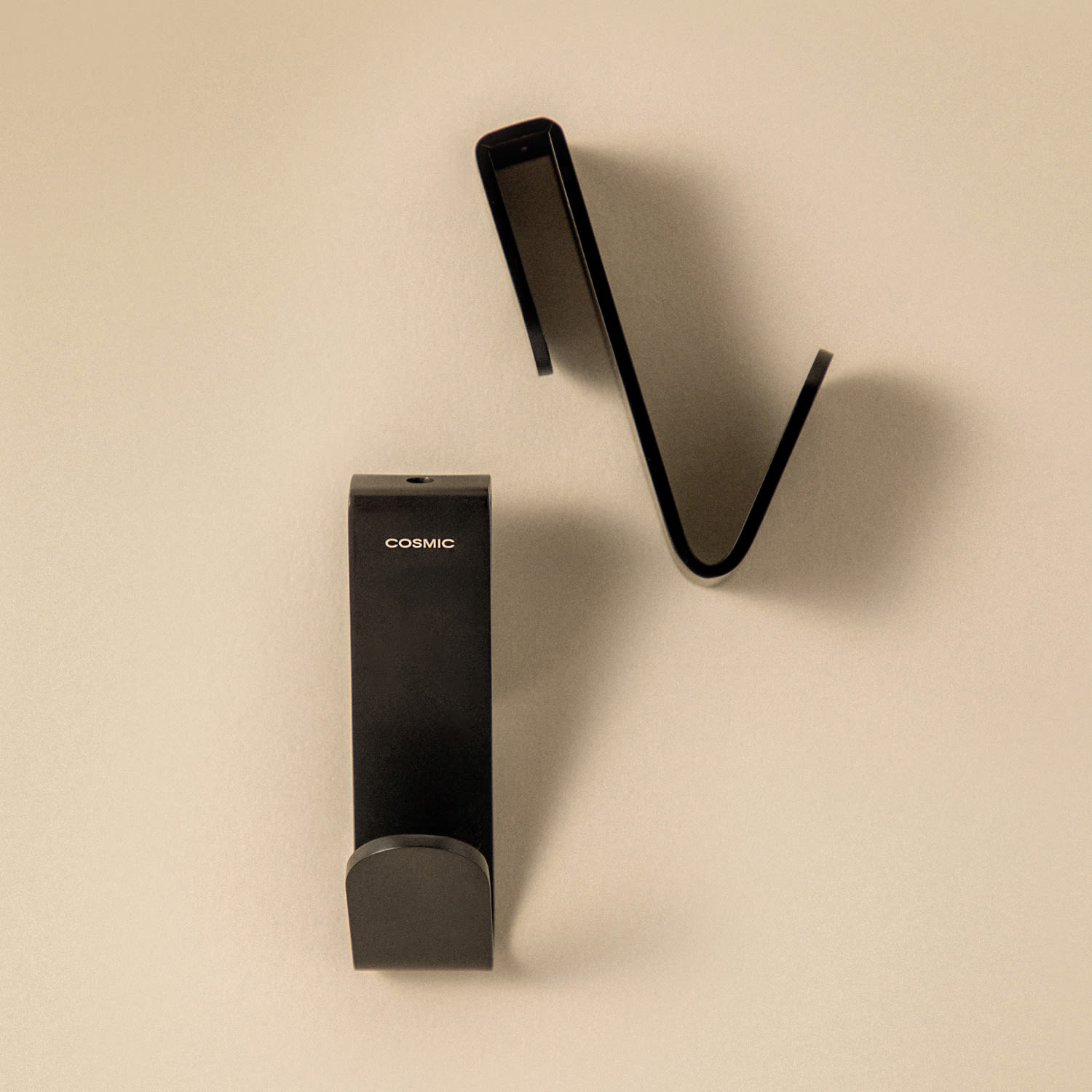 Zwei praktische Haken die am Glas des Bildschirms hängen und den Schwamm, die Bürste oder das Handtuch zur Hand haben. Es ist ein praktisches Set, das keinerlei Installation erfordert. Das Soft Black-Finish ein besonders mattes Schwarz macht es außerdem sehr widerstandsfähig, kompakt und gleichmäßig. Diese Haken gehören zur Architect S+ -Kollektion, die von Cosmic Studio mit dem Ziel erstellt wurde, eine Sammlung maximaler Funktionalität zu bieten. Cosmic ist eine Marke, die sich auf Designer-Badzubehör und -möbel spezialisiert hat und sich durch Innovation und die Anwendung neuer Materialien sowie durch die Suche nach dem Wohlbefinden des Badbenutzers auszeichnet. Produkt mit 10 Jahren Garantie. Verwenden Sie zur Reinigung Seifenwasser, spülen Sie es mit viel Wasser ab und trocknen Sie es schließlich mit einem weichen Tuch oder Fensterleder ab. Verwenden Sie niemals starke Produkte, die Säuren, Bleichmittel oder Schleifmittel enthalten.