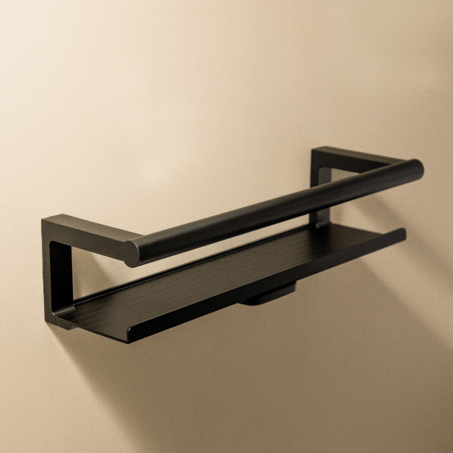 Zwei in einem: eine Seifenschale für die Dusche mit einem Fensterreiniger im Sockel. Ein sehr nützliches Zubehör, denn der Reiniger ist versteckt und vollständig in den Boden des Regals integriert. Er ist immer einsatzbereit, so dass Sie die Wasserreste, die nach dem Duschen auf der Scheibe zurückbleiben, leicht entfernen können. Die Seifenschale ist zur einfachen Reinigung abnehmbar. Das Regal besteht aus eloxiertem Aluminium, einem Material, das sehr feuchtigkeitsbeständig ist. Sein Finish, ein Soft Black, ein extra mattes Schwarz, macht es sehr widerstandsfähig, kompakt und gleichmäßig. Diese Seifenschale mit Glasreiniger gehört zur Kollektion Architect S+, die von Cosmic Studio mit dem Ziel entworfen wurde, eine Kollektion mit maximaler Funktionalität anzubieten. Cosmic ist eine Marke, die sich auf Designer-Bad-Accessoires und -Möbel spezialisiert hat. Sie zeichnet sich durch Innovation und die Verwendung neuer Materialien aus und ist auf das Wohlbefinden der Badbenutzer bedacht. Diese Seifenschale ist aus Aluminium, Edelstahl, Messing oder ähnlichen Legierungen in dreiwertiger Chromausführung und Kunststoff hergestellt. Produktgarantie für 10 Jahre. Zur Reinigung Seifenwasser verwenden, mit viel Wasser abspülen und anschließend mit einem weichen Tuch oder Fensterleder abtrocknen. Verwenden Sie niemals starke säurehaltige Produkte, Bleichmittel oder Scheuermittel.