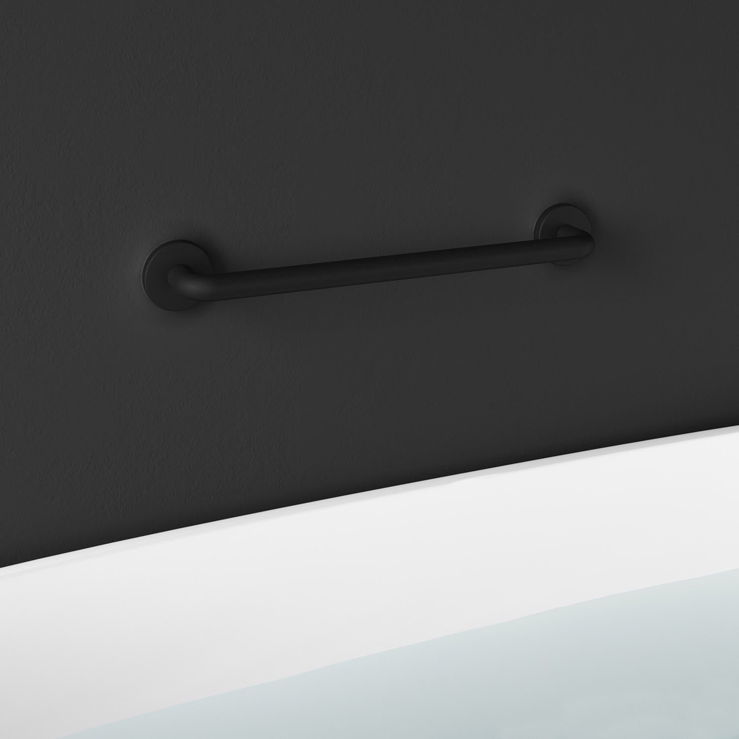 Zur Installation im Bereich der Badewanne oder Duschbadewanne handhaben und die Sicherheit im Badezimmer erhöhen. Mit diesem 45-cm-Stück in Form einer festen Stange verbessern Sie die Autonomie der Badezimmerbenutzer, insbesondere älterer Menschen und Kinder. Sie haben das gleiche Modell in 30 cm. Es ist ein sehr robuster Griff, der nach der Installation vollständig an der Wand befestigt wird, da er ein extrem widerstandsfähiges Befestigungssystem enthält, das von Cosmic entwickelt wurde, um seinen vollständigen Halt zu gewährleisten. Das Soft Black-Finish, ein besonders mattes Schwarz, macht es außerdem sehr widerstandsfähig, kompakt und gleichmäßig. Dieser Griff gehört zur Architect S+ -Kollektion, die von Cosmic Studio mit dem Ziel entwickelt wurde, eine Kollektion mit maximaler Funktionalität zu bieten. Cosmic ist eine Marke, die sich auf Designer-Badzubehör und -möbel spezialisiert hat und sich durch Innovation und die Anwendung neuer Materialien sowie durch die Suche nach dem Wohlbefinden des Badbenutzers auszeichnet. Produkt mit 10 Jahren Garantie. Verwenden Sie zur Reinigung Seifenwasser, spülen Sie es mit viel Wasser ab und trocknen Sie es schließlich mit einem weichen Tuch oder Fensterleder ab. Verwenden Sie niemals starke Produkte, die Säuren, Bleichmittel oder Schleifmittel enthalten.