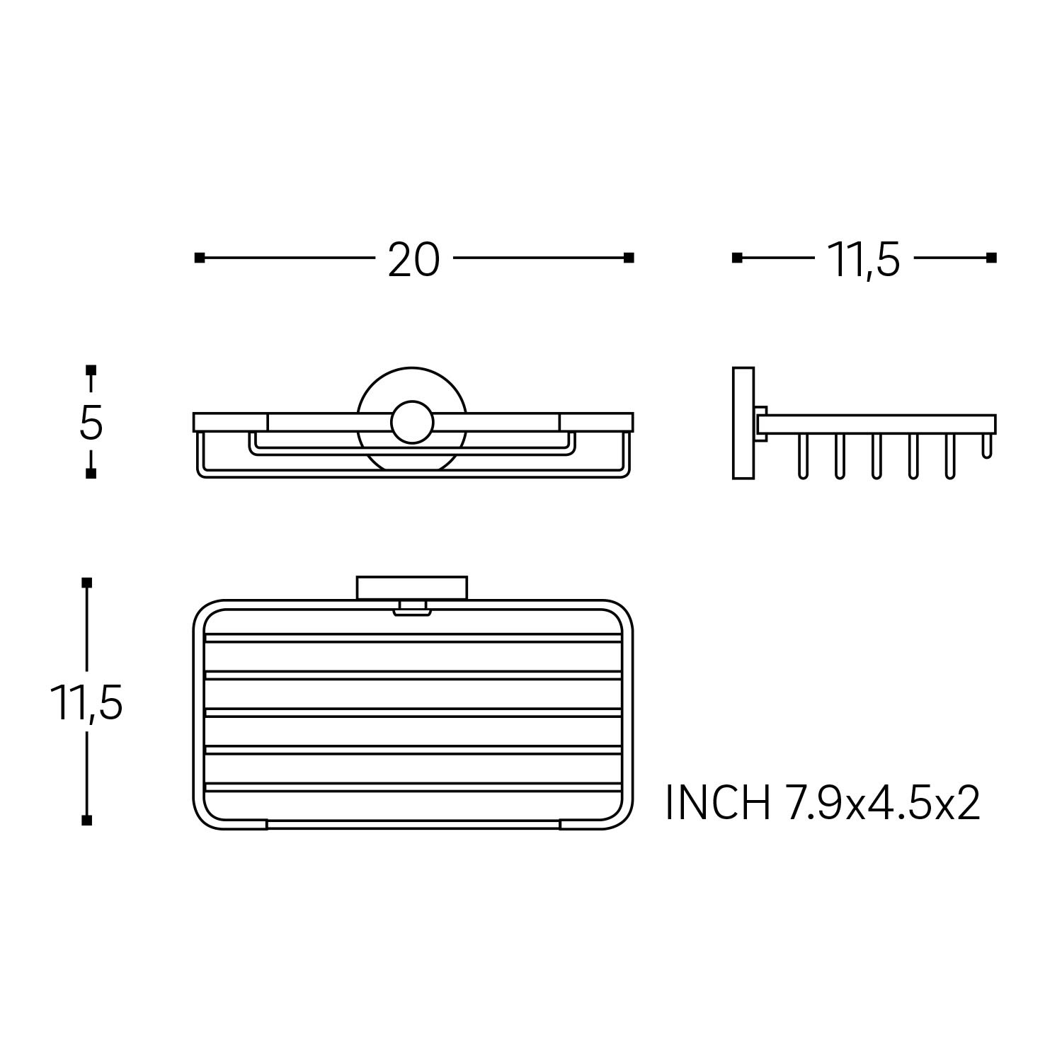 B: 20 T: 11,5 H: 5 cm