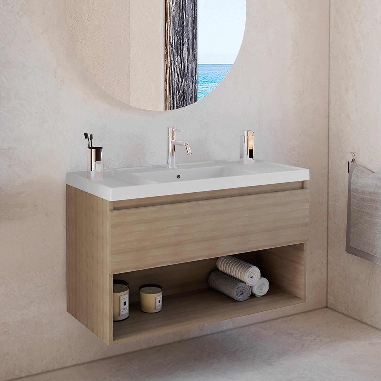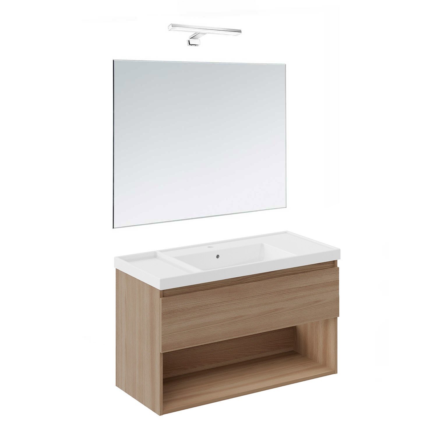 COSMIC B-Best Badmöbel Set 100 cm mit Spiegel und Wandleuchte