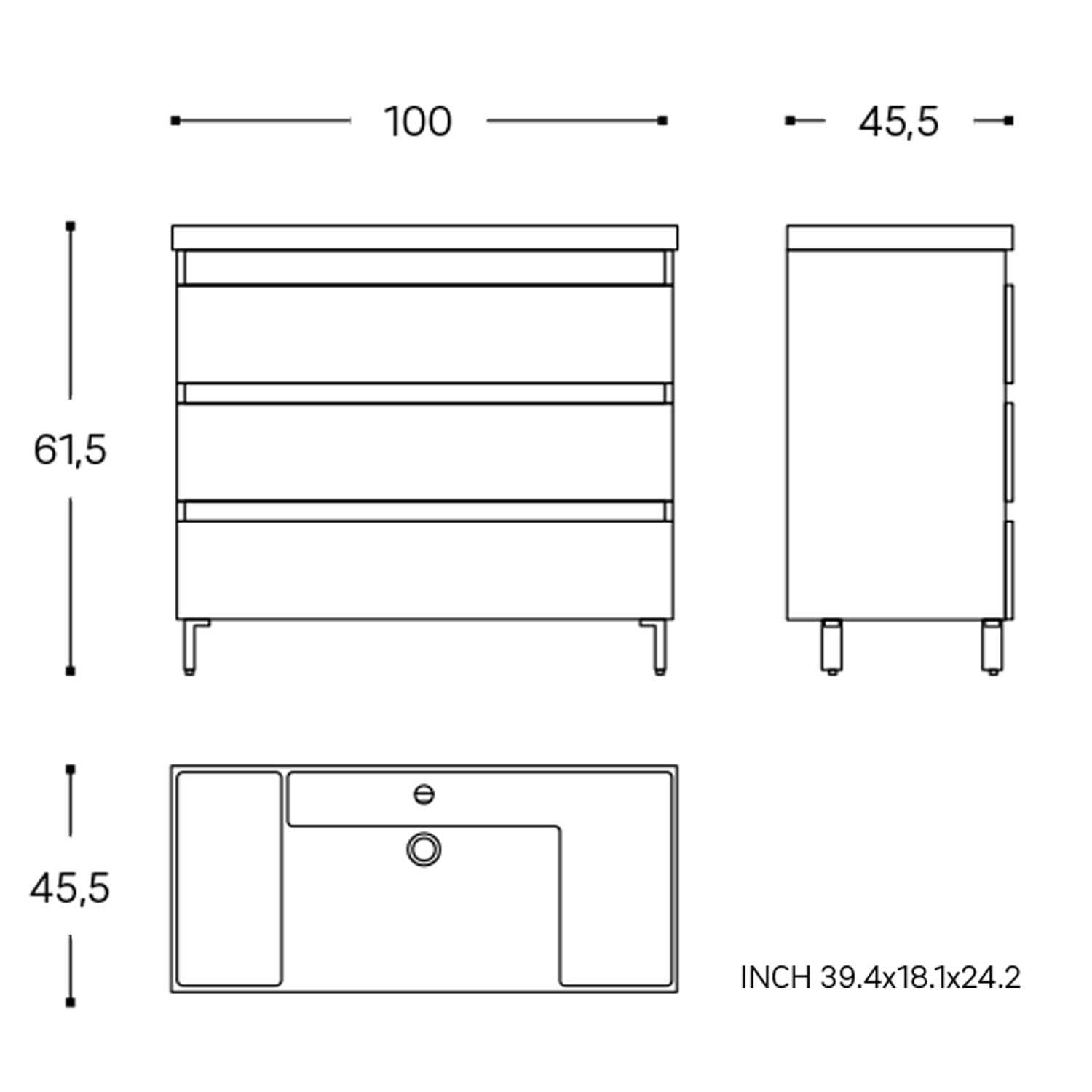 - B: 100 cm T: 45 cm H: 56,5 cm