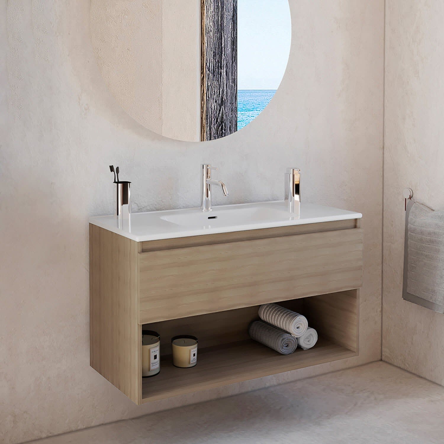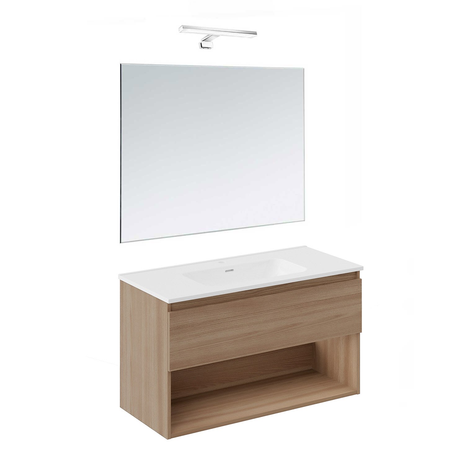 COSMIC B-Best Badmöbel Set 100 cm mit Spiegel und Wandleuchte