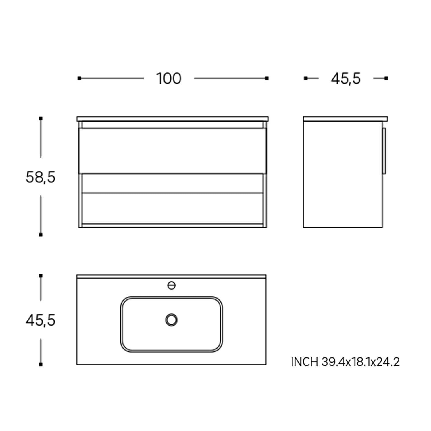 - B: 100 cm T: 45 cm H: 56,5 cm