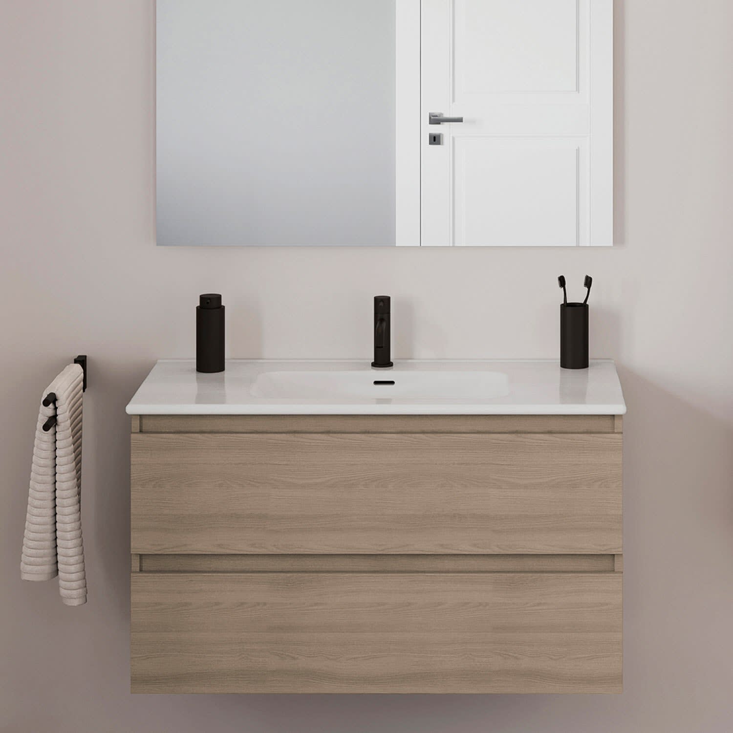 COSMIC B-Best Badmöbel Set 100 cm mit Spiegel und Wandleuchte
