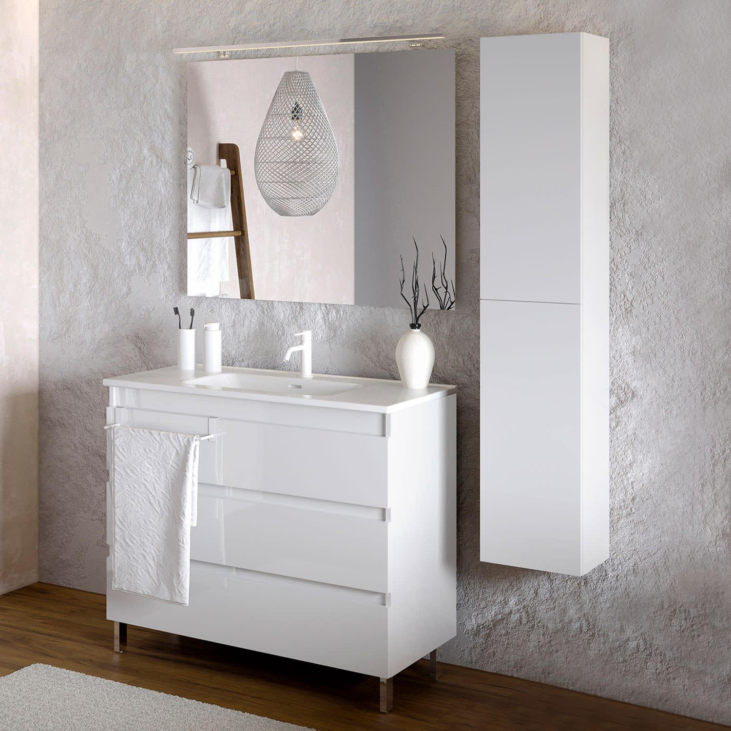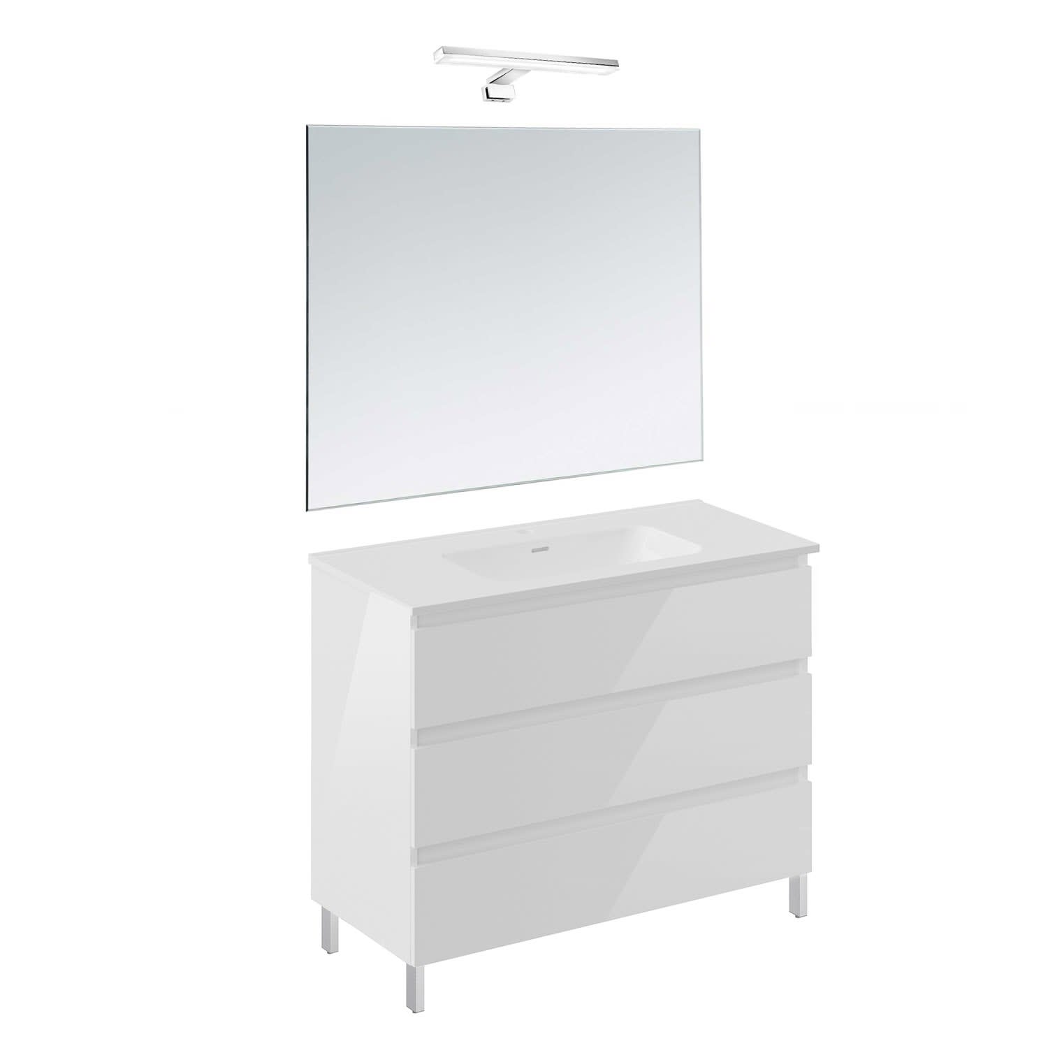 COSMIC B-Best Badmöbel Set 100 cm mit Spiegel und Wandleuchte