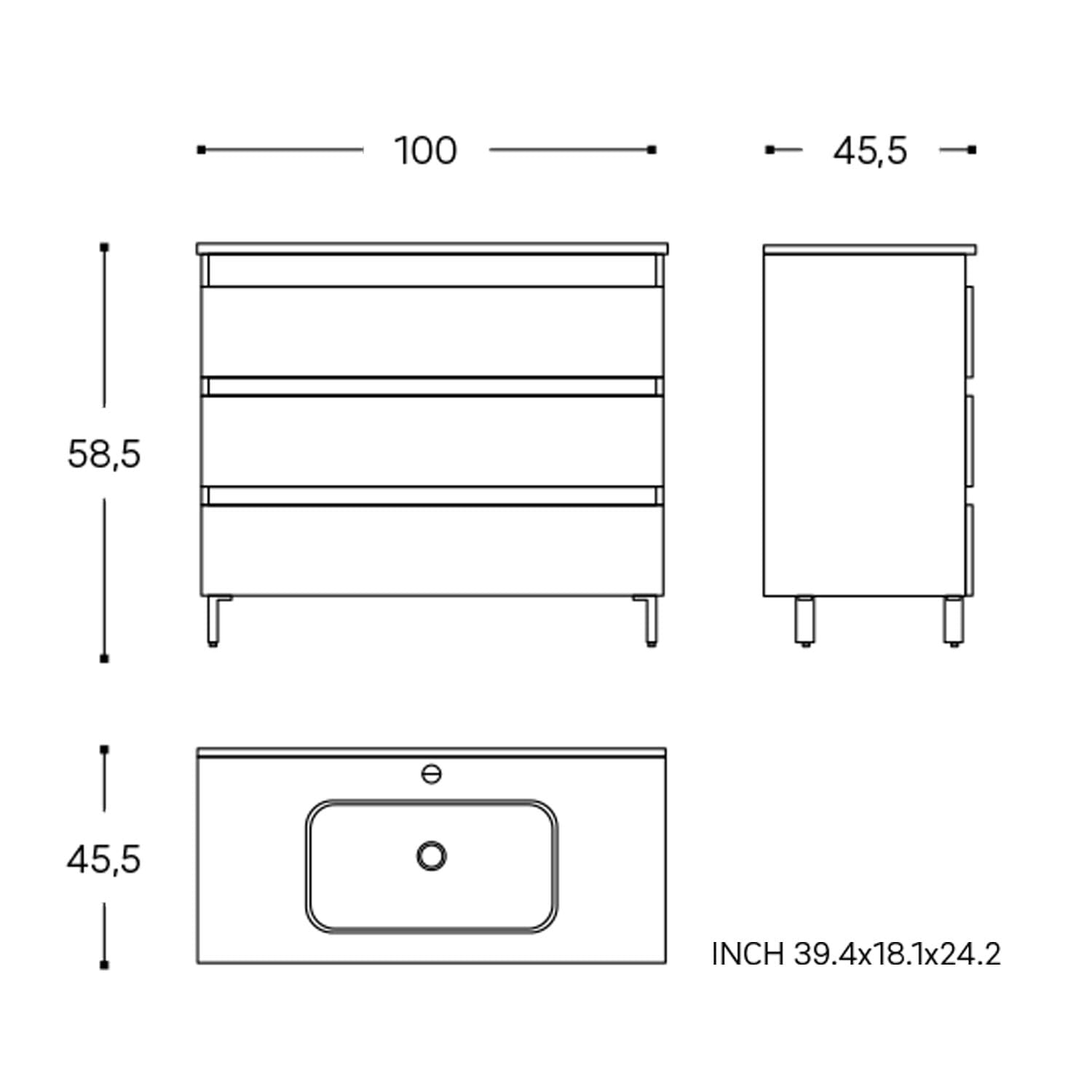 B: 100 T: 45 H: 58,5 cm