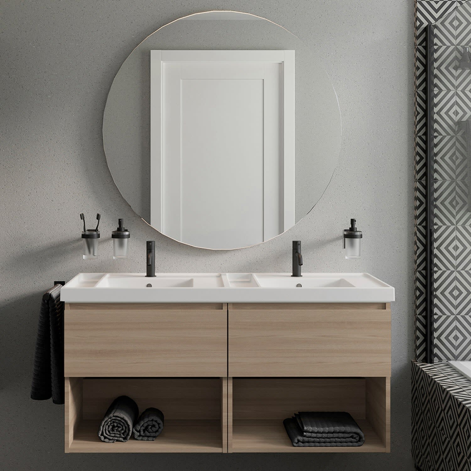 COSMIC B-Best Badmöbel Set 120 cm mit Spiegel und Wandleuchte