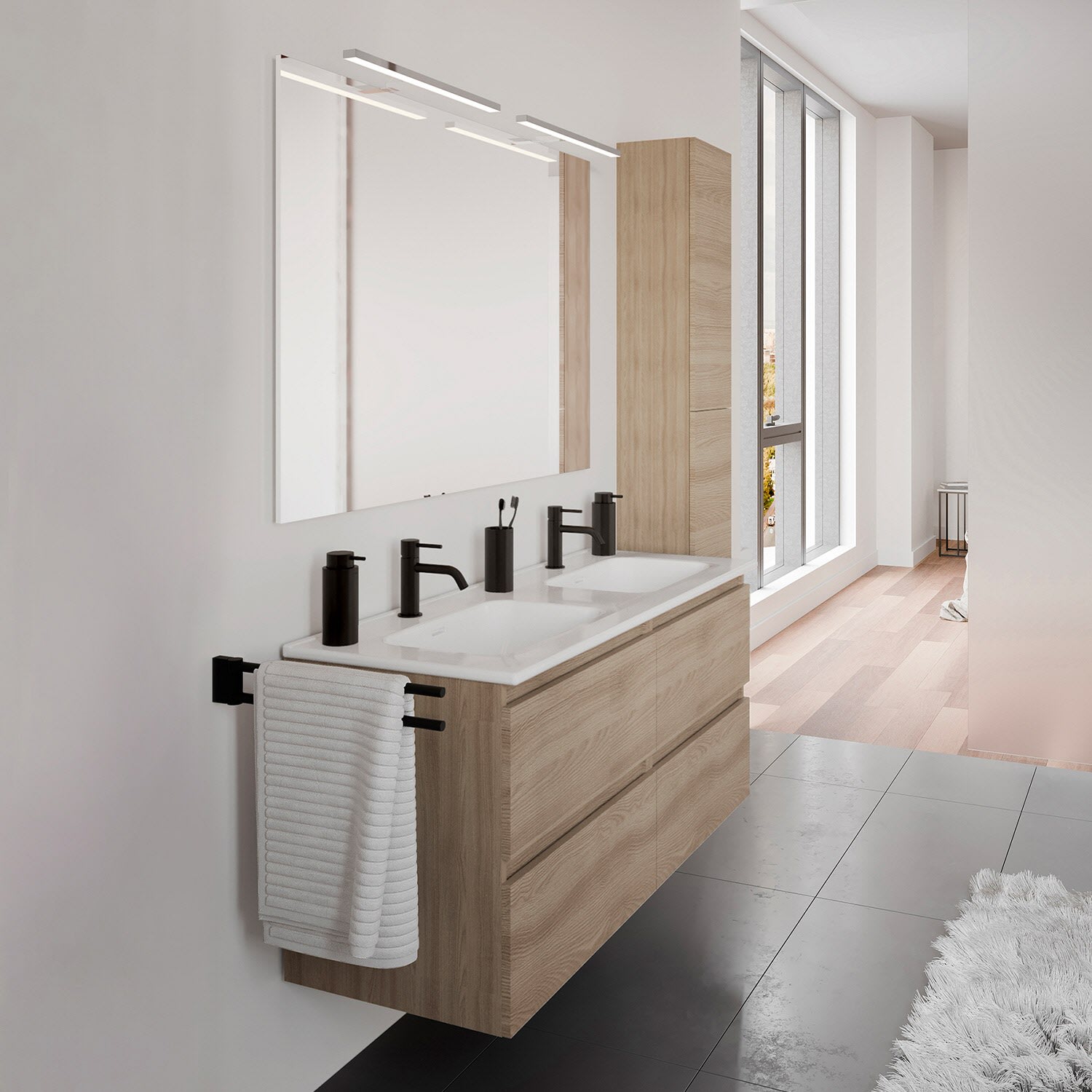 COSMIC B-Best Badmöbel Set 120 cm mit Spiegel und Wandleuchte