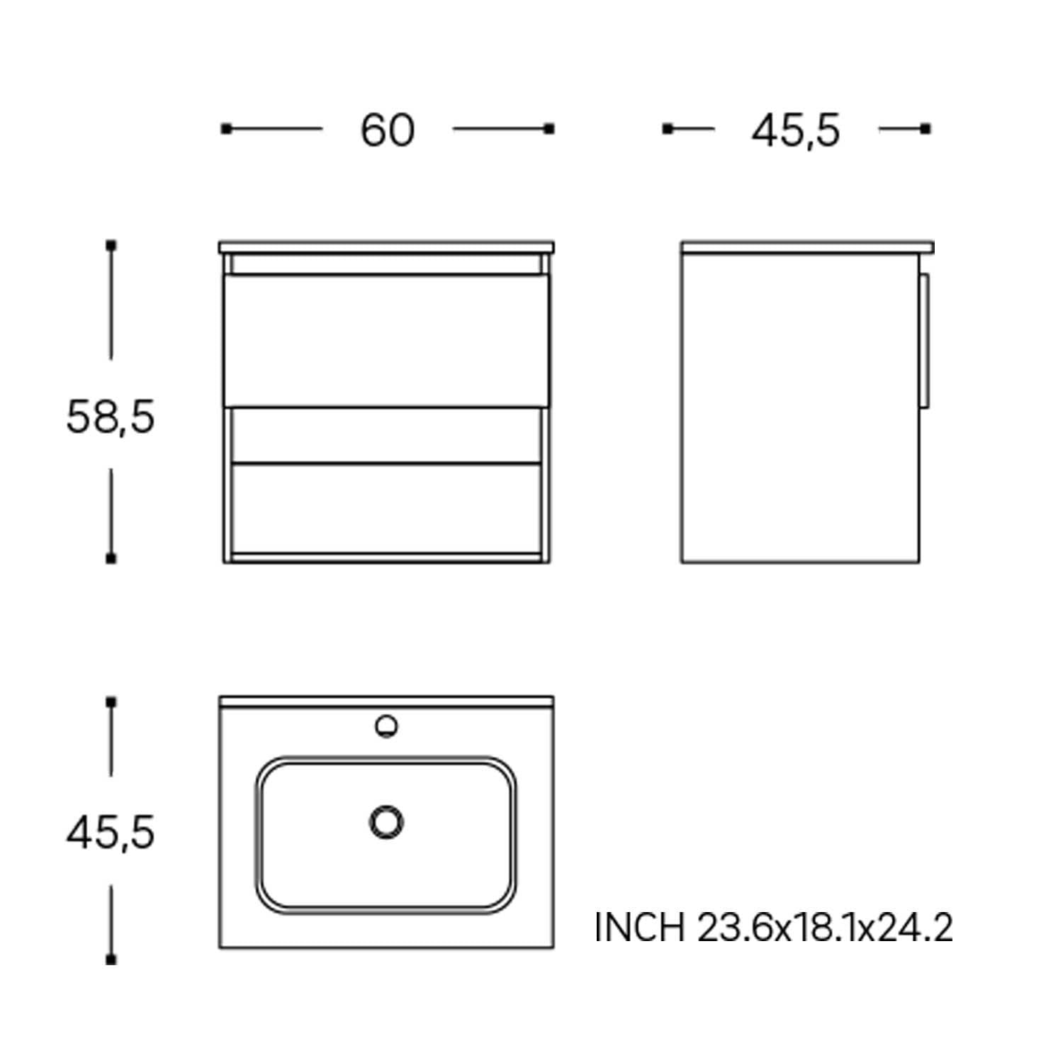 B: 60 T: 45,5 H: 58,5 cm