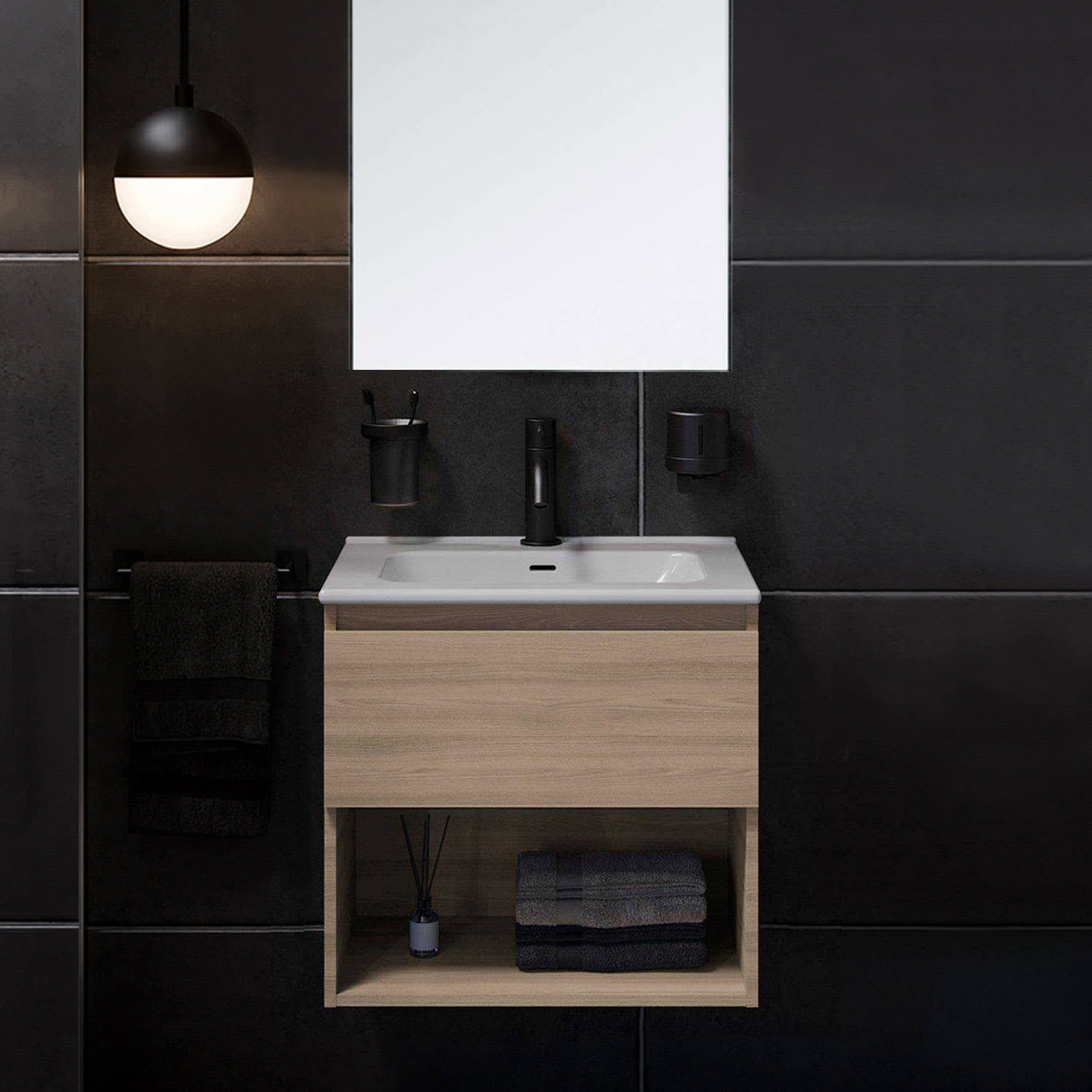 COSMIC B-Best Badmöbel Set 60 cm mit Spiegel und Wandleuchte