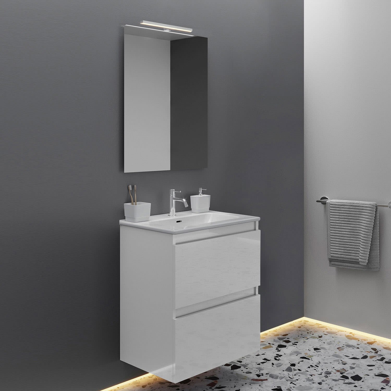COSMIC B-Best Badmöbel Set 60 cm mit Spiegel und Wandleuchte