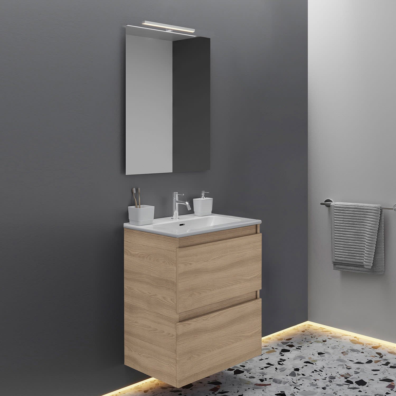 COSMIC B-Best Badmöbel Set 60 cm mit Spiegel und Wandleuchte