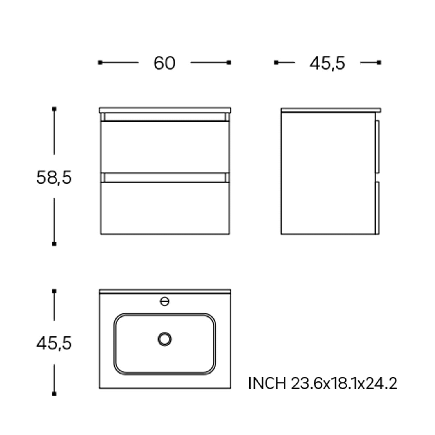 B: 60 T: 45,5 H: 58,5 cm