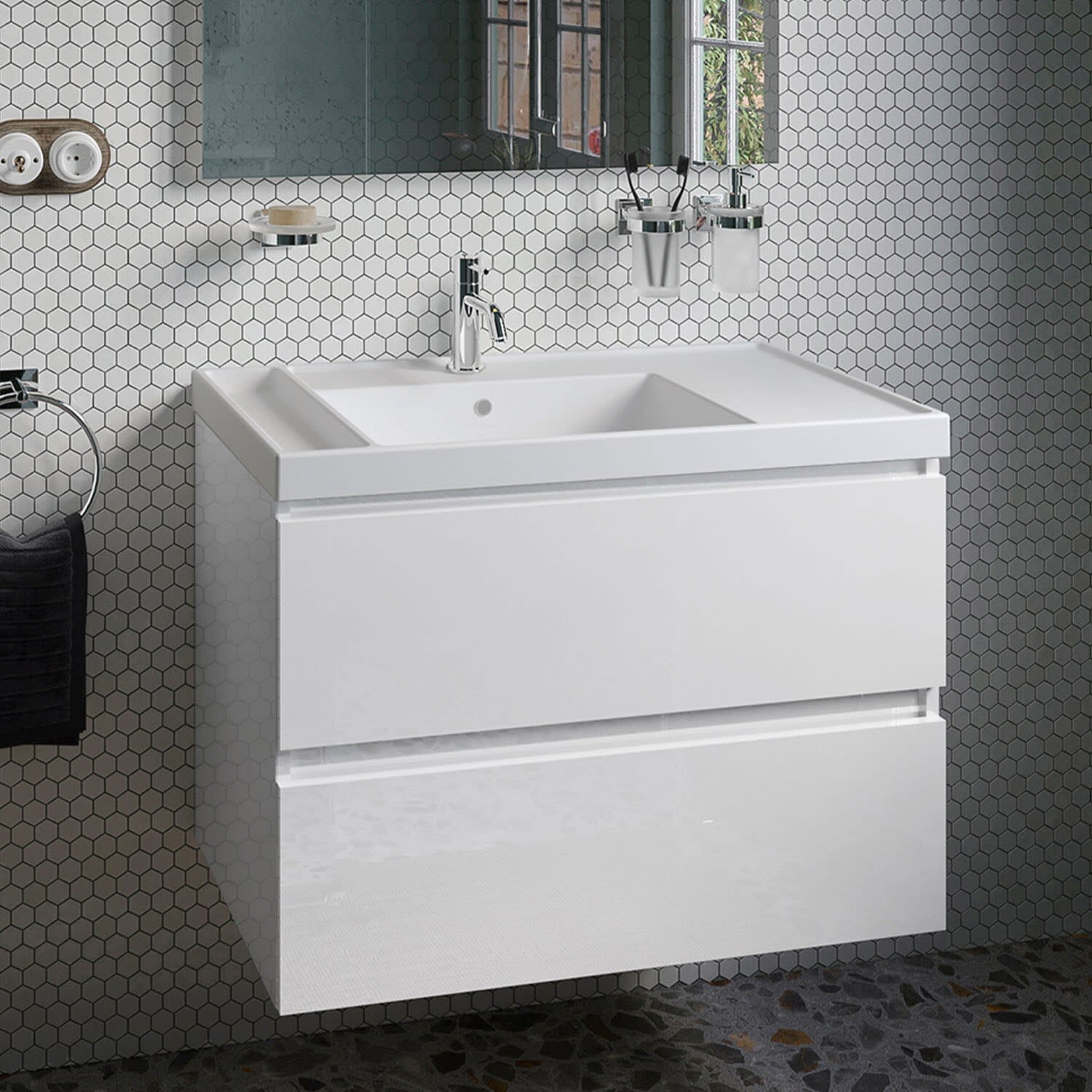COSMIC B-Best Badmöbel Set 80 cm mit Spiegel und Wandleuchte