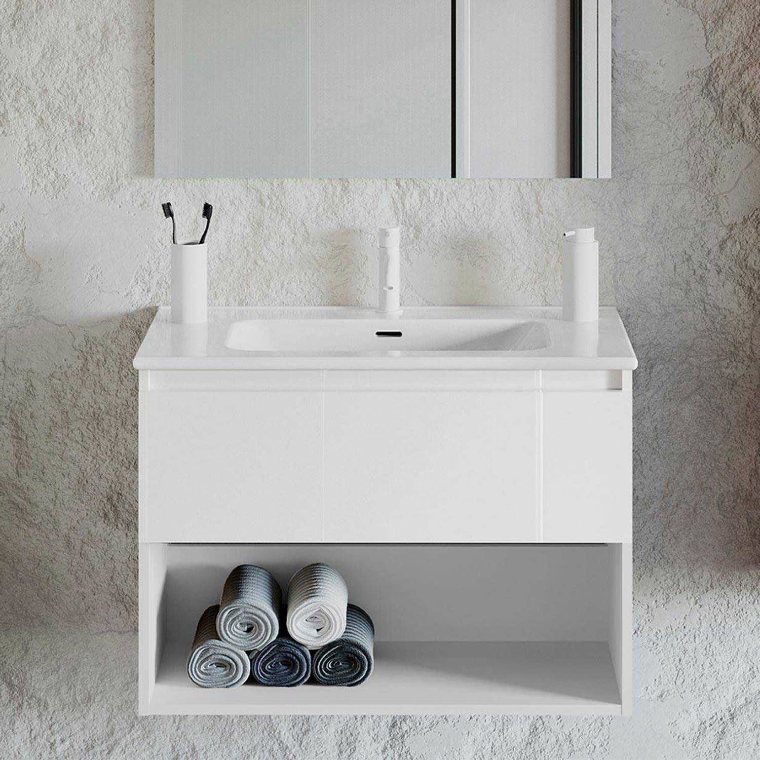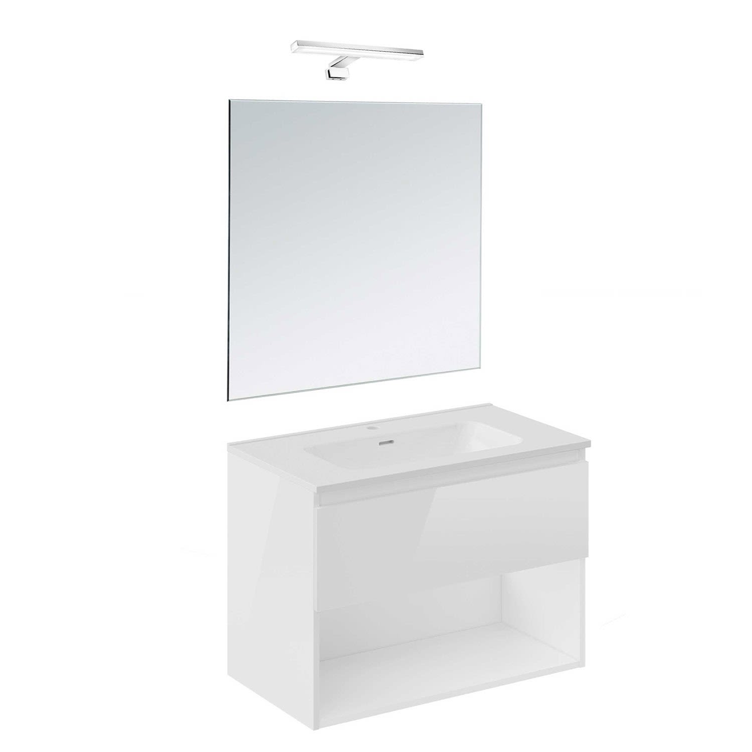 COSMIC B-Best Badmöbel Set 80 cm mit Spiegel und Wandleuchte