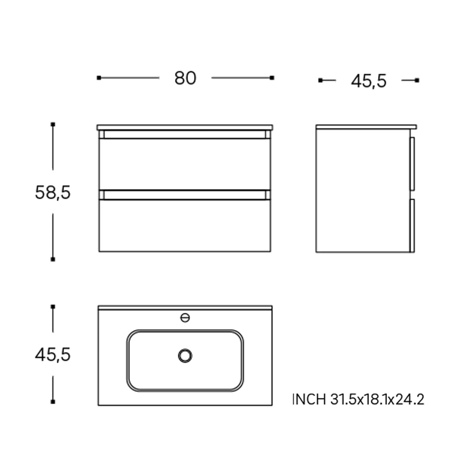 B: 80 T: 45,5 H: 58,5 cm