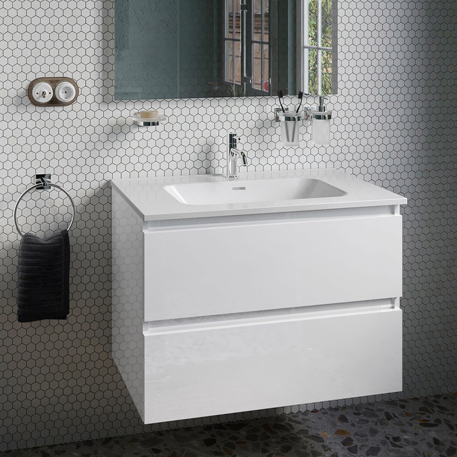 COSMIC B-Best Badmöbel Set 80 cm mit Spiegel und Wandleuchte