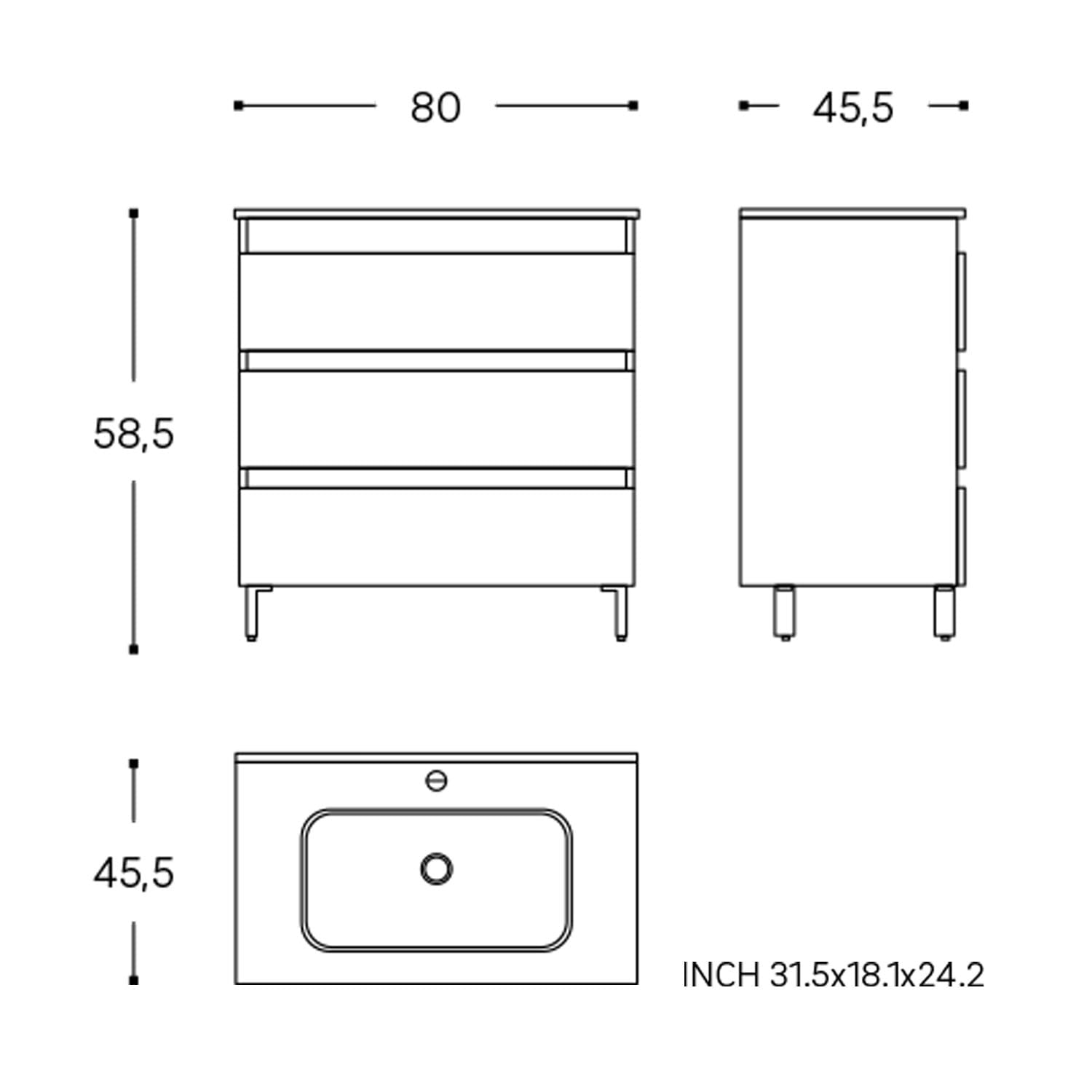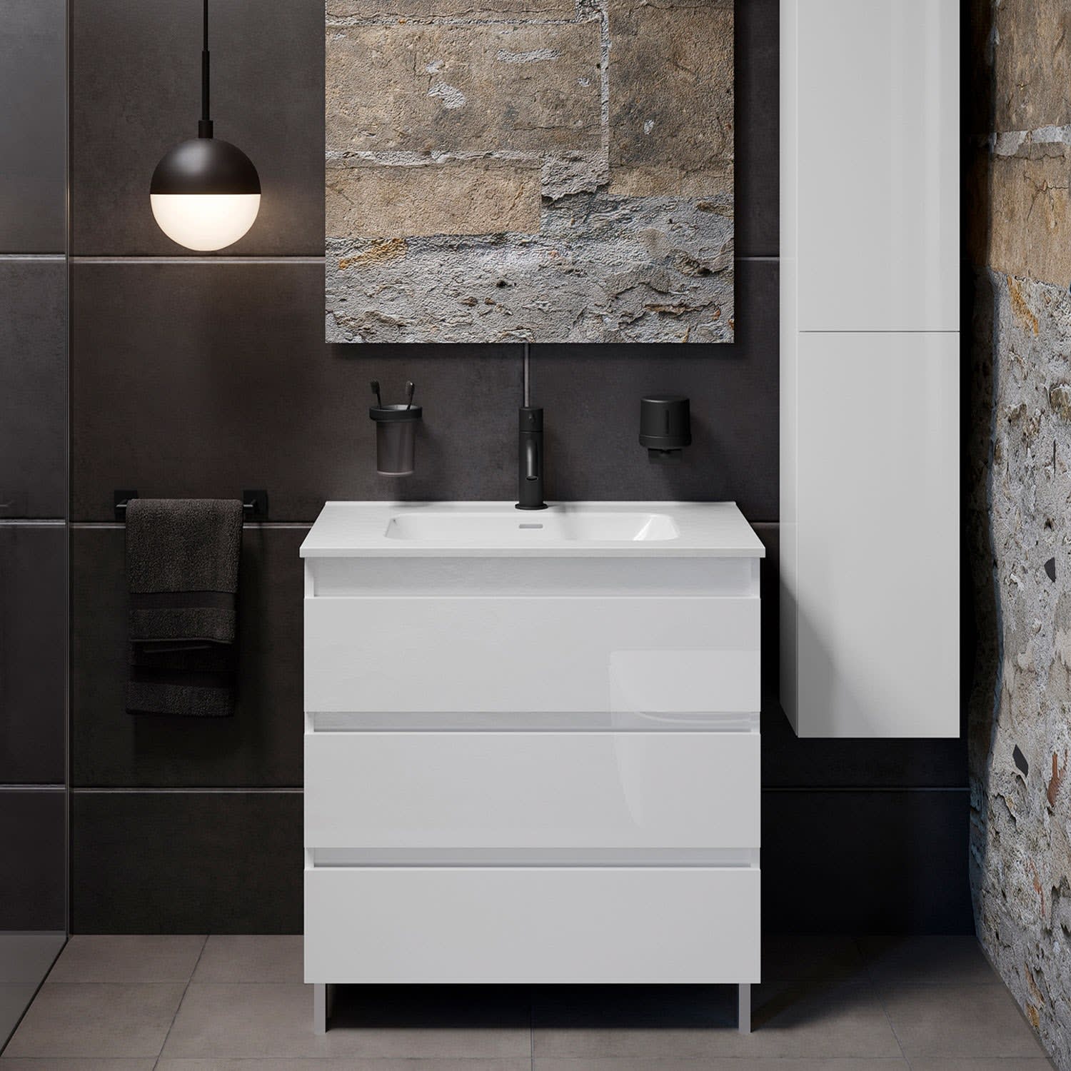 COSMIC B-Best Badmöbel Set 80 cm mit Spiegel und Wandleuchte