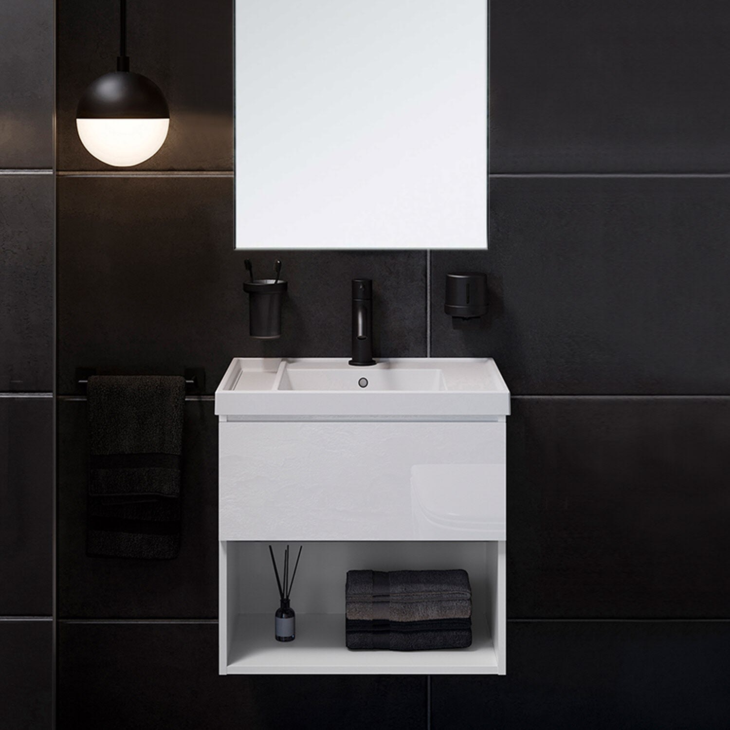 COSMIC B-Best Badmöbel Set 60 cm mit Spiegel und Wandleuchte