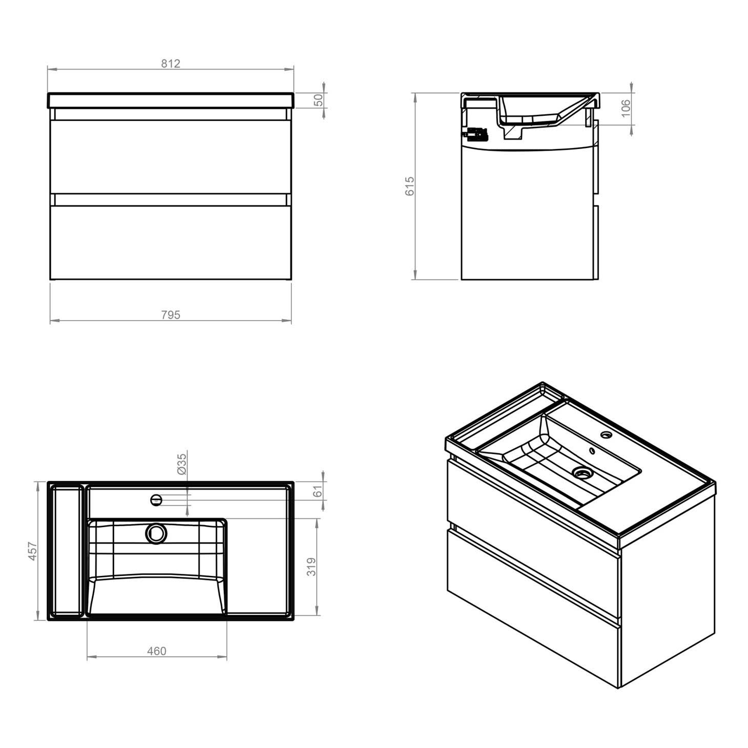 COSMIC B-Best 80 cm Waschtisch mit Unterschrank