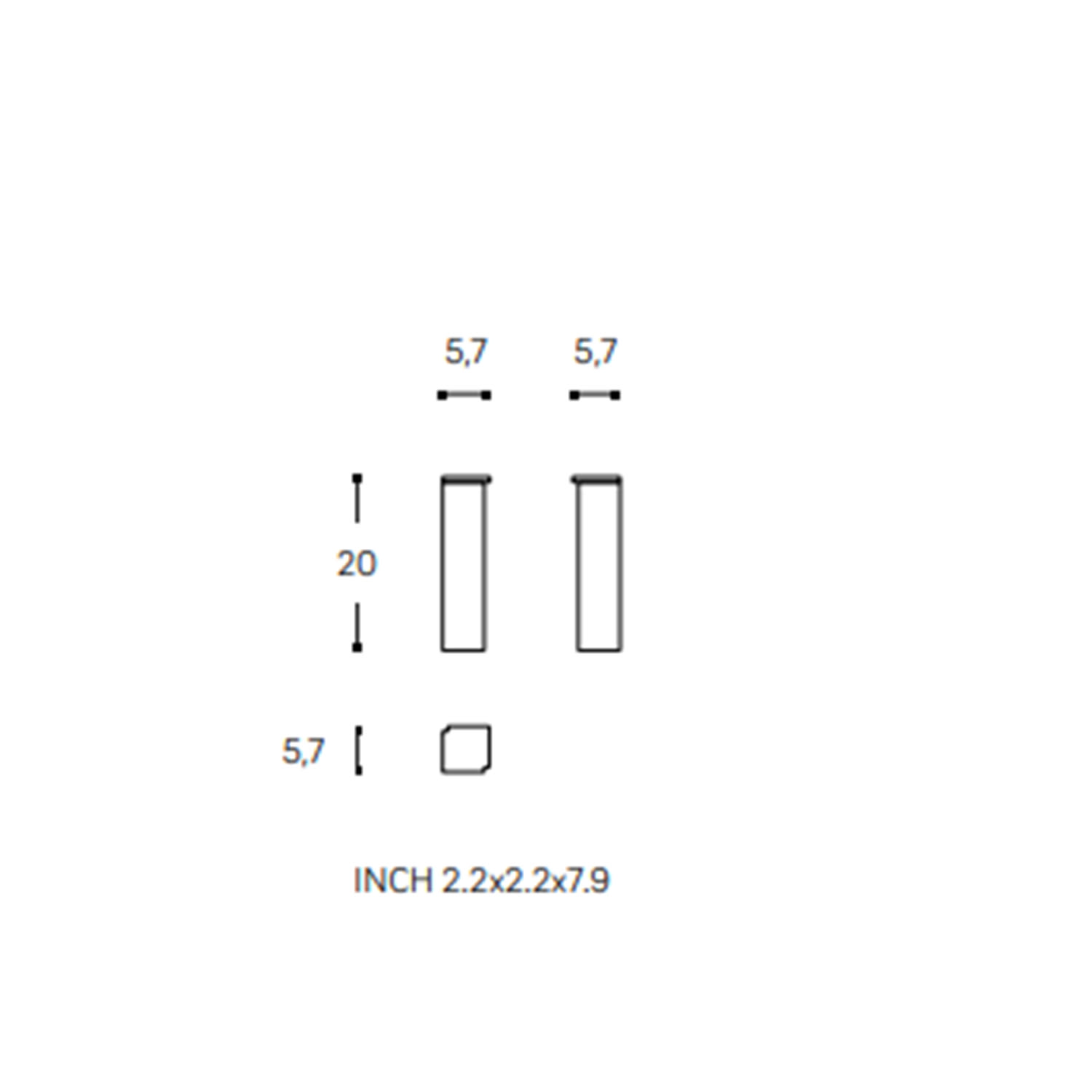 B: 5,7 T: 5,7 H: 20 cm
