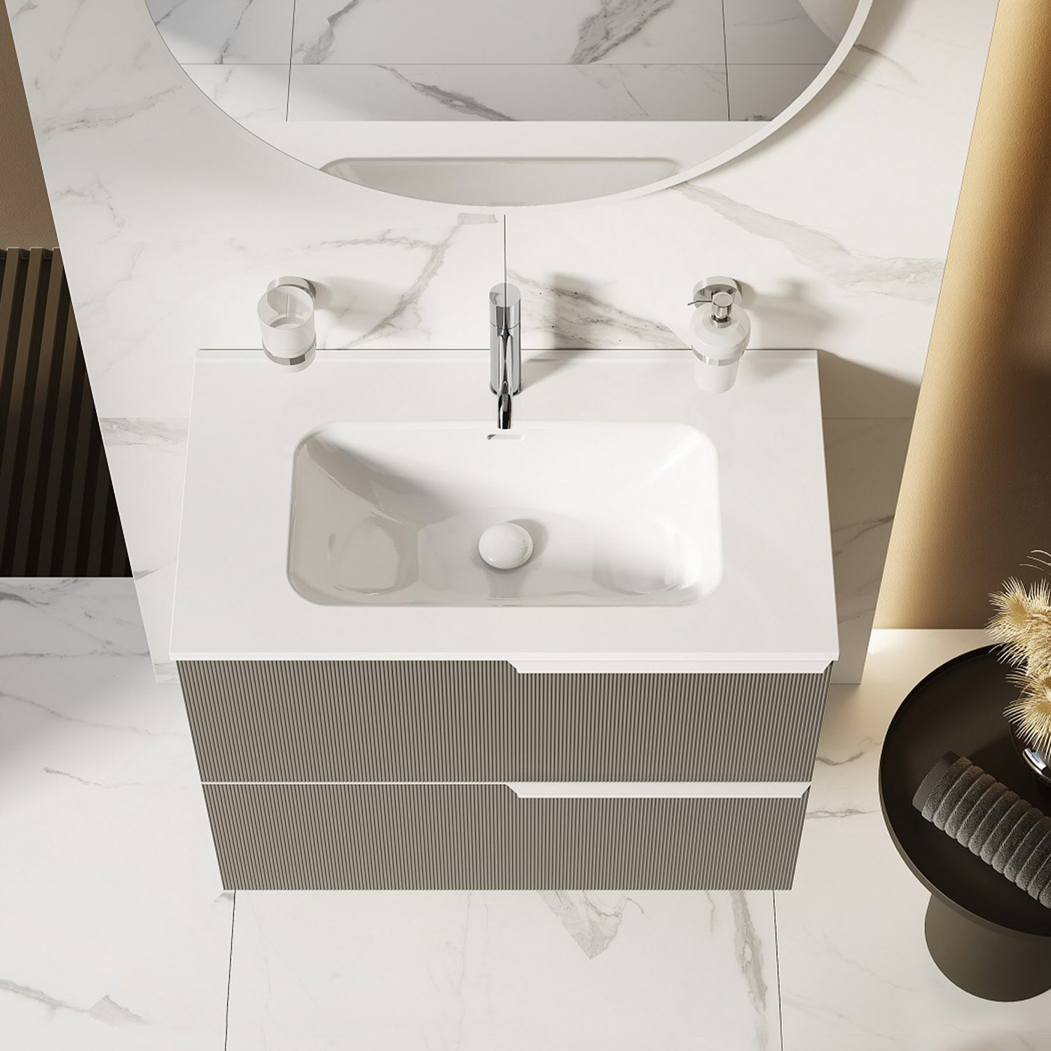 - Ablaufventil mit keramischer Abdeckung in Waschtischfarbe
