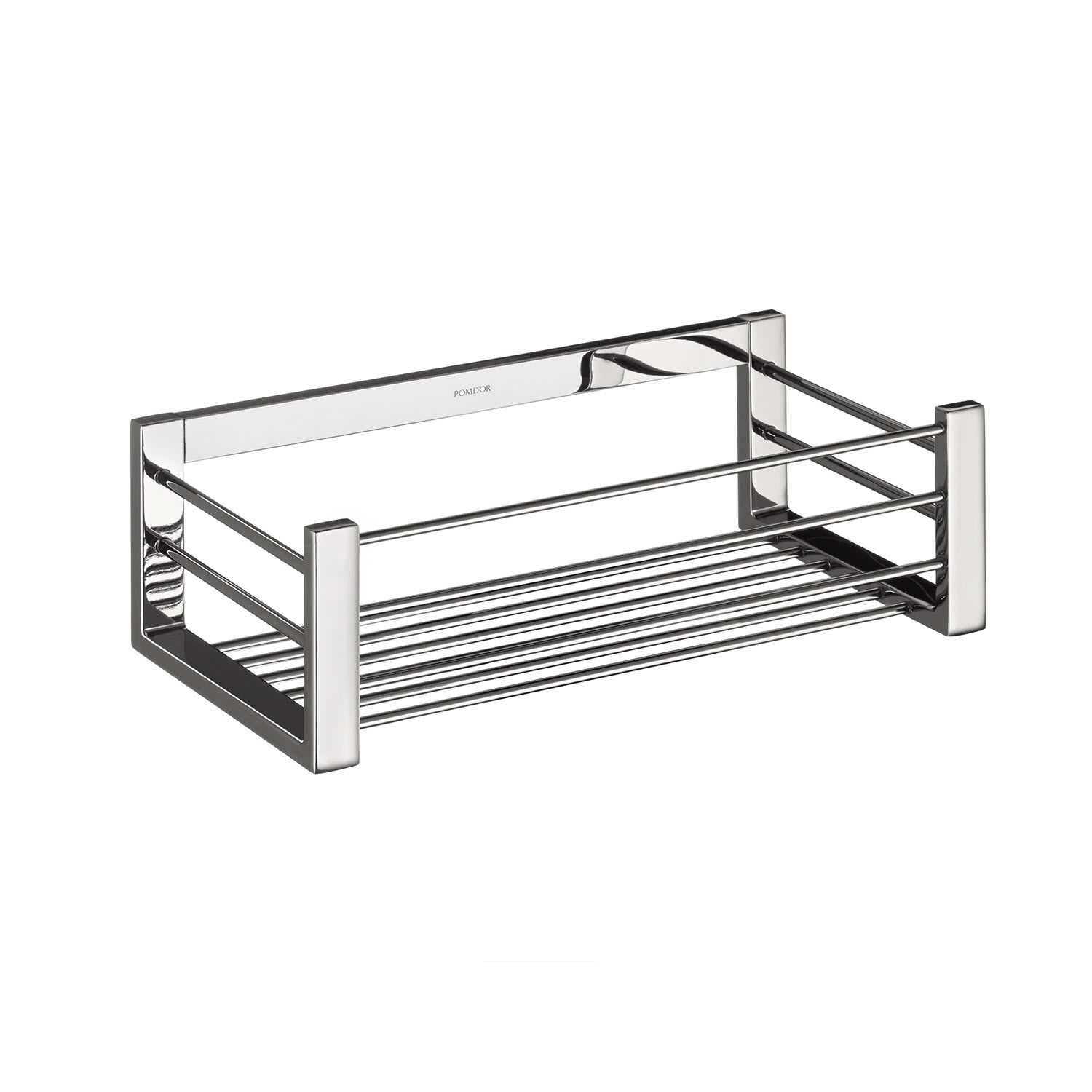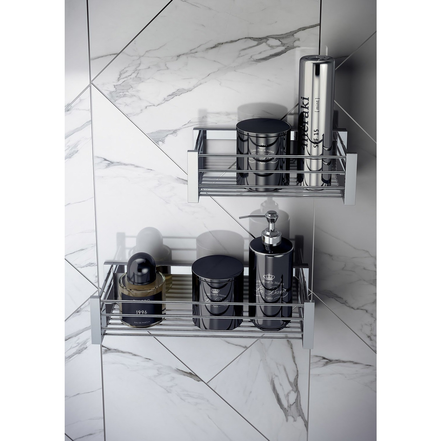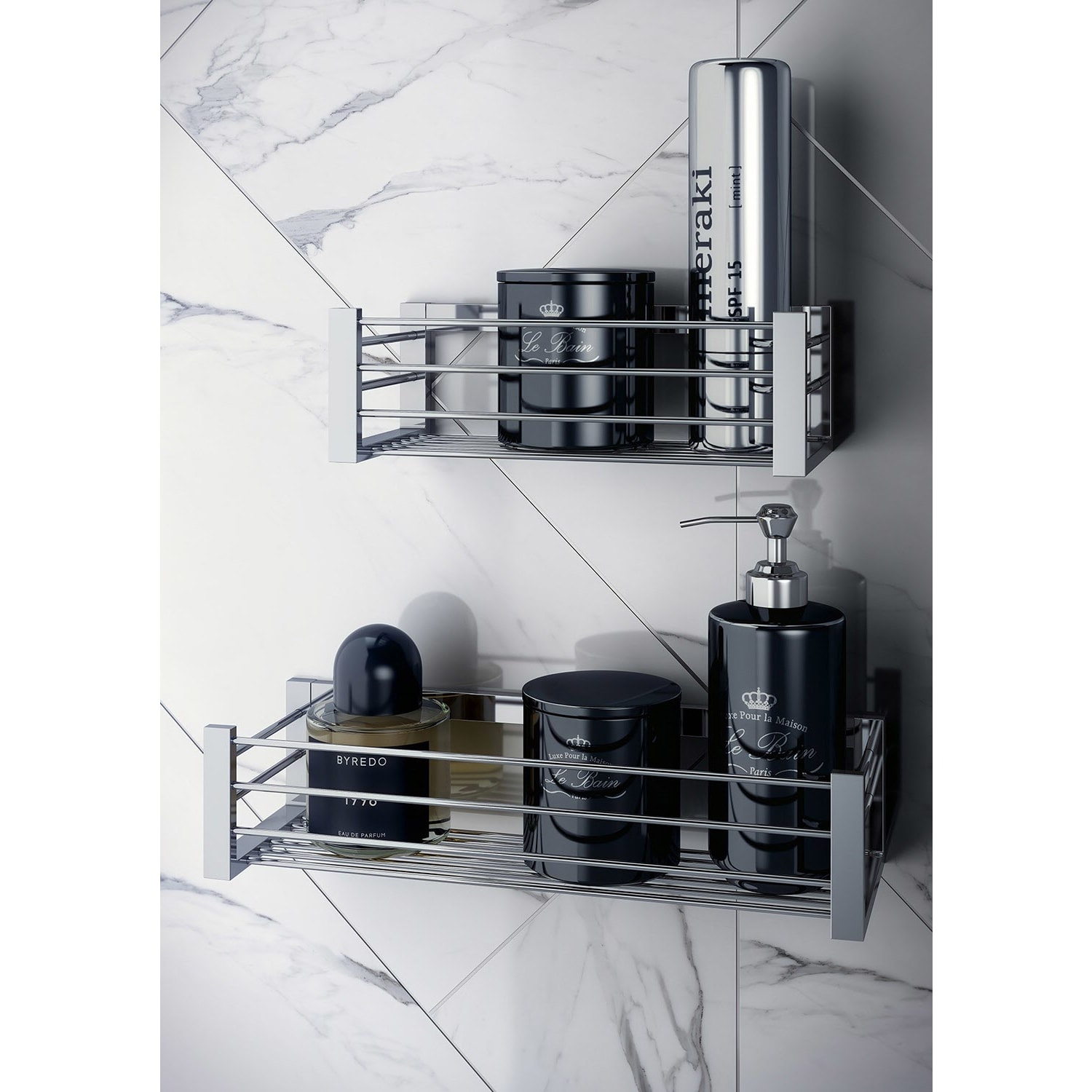Abnehmbare Duschseifenschale. Ein sehr praktisches Accessoire, mit dem Sie Gel- und Shampoo-Behälter in der Dusche griffbereit halten können, ohne viel Platz zu beanspruchen. Dank seines abnehmbaren Befestigungssystems können Sie es jederzeit mit einer einfachen seitlichen Bewegung abnehmen und wieder aufhängen. Dadurch ist es leicht zu reinigen. Die Seifenschale enthält auch ein Anti-Vandalismus-System, das sehr nützlich ist, wenn Sie es in einem Badezimmer zur gemeinsamen Nutzung oder in einem Hotelbetrieb installieren möchten. So kann die seitliche Bewegung durch den Einbau von zwei blinden Innensechskantschrauben dauerhaft blockiert werden, die verdeckt bleiben und das Abnehmen der Seifenschale verhindern. In Chrom ausgeführt, haben Sie das gleiche Modell in Gold.