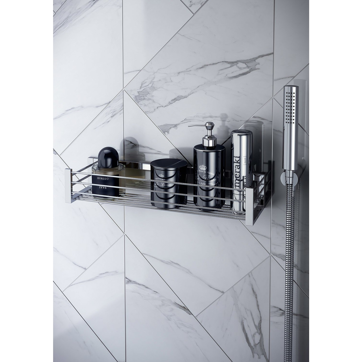 Abnehmbare Duschseifenschale. Ein sehr praktisches Accessoire, mit dem Sie Gel- und Shampoo-Behälter in der Dusche griffbereit halten können, ohne viel Platz zu beanspruchen. Dank seines abnehmbaren Befestigungssystems können Sie es jederzeit mit einer einfachen seitlichen Bewegung abnehmen und wieder aufhängen. Dadurch ist es leicht zu reinigen. Die Seifenschale enthält auch ein Anti-Vandalismus-System, das sehr nützlich ist, wenn Sie es in einem Badezimmer zur gemeinsamen Nutzung oder in einem Hotelbetrieb installieren möchten. So kann die seitliche Bewegung durch den Einbau von zwei blinden Innensechskantschrauben dauerhaft blockiert werden, die verdeckt bleiben und das Abnehmen der Seifenschale verhindern. In Chrom ausgeführt, haben Sie das gleiche Modell in Gold.