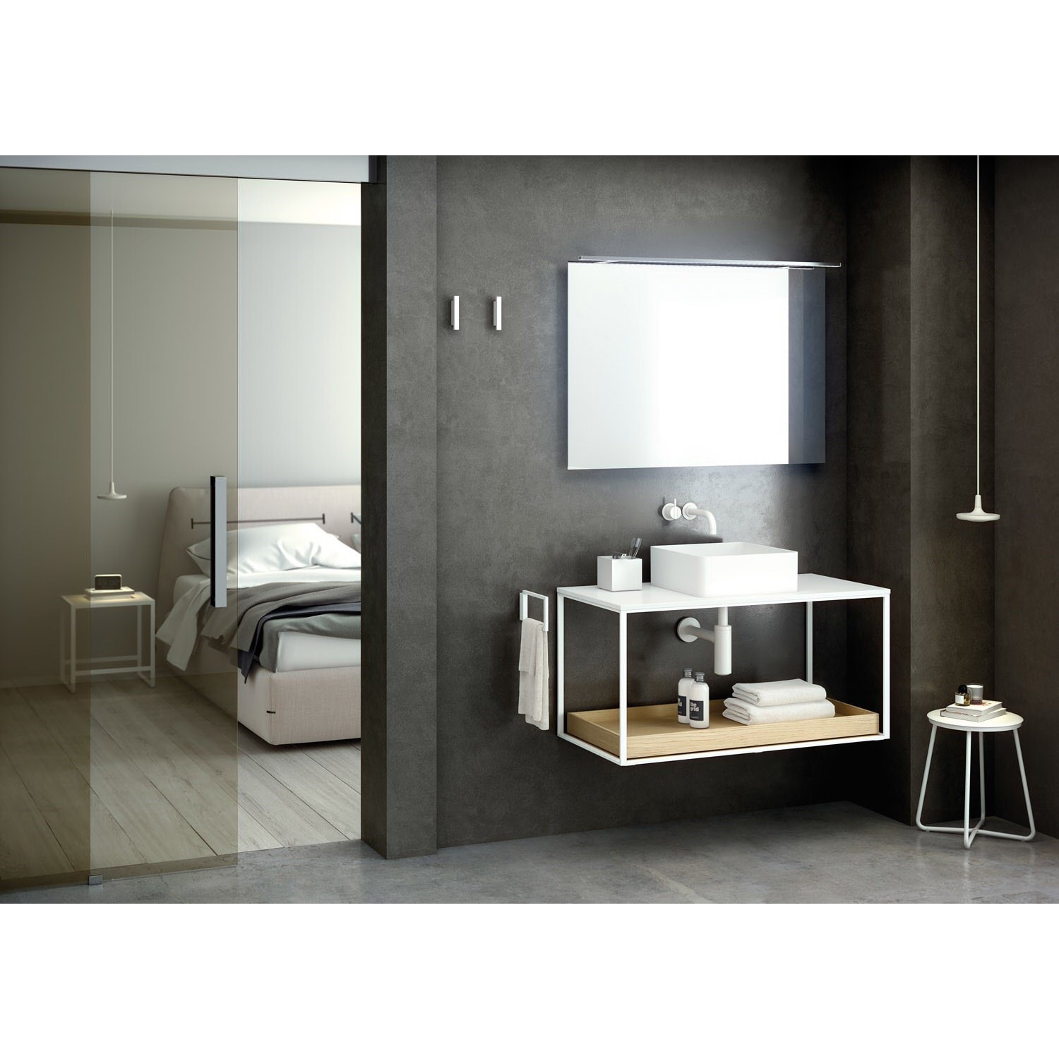 Dieser Hocker ist Teil der Geyser-Kollektion von Cosmic. Der von Nahtrang entworfene Vorschlag ist eine Sammlung von Arbeitsplatten- und Bodenzubehör und ergänzt ein Design, das von Formen inspiriert ist, die wie Wasser fließen. Cosmic ist eine Marke, die sich auf Accessoires und Möbel für das Badezimmer spezialisiert hat und nach Innovationen sowohl bei Materialien als auch bei Designs sucht.