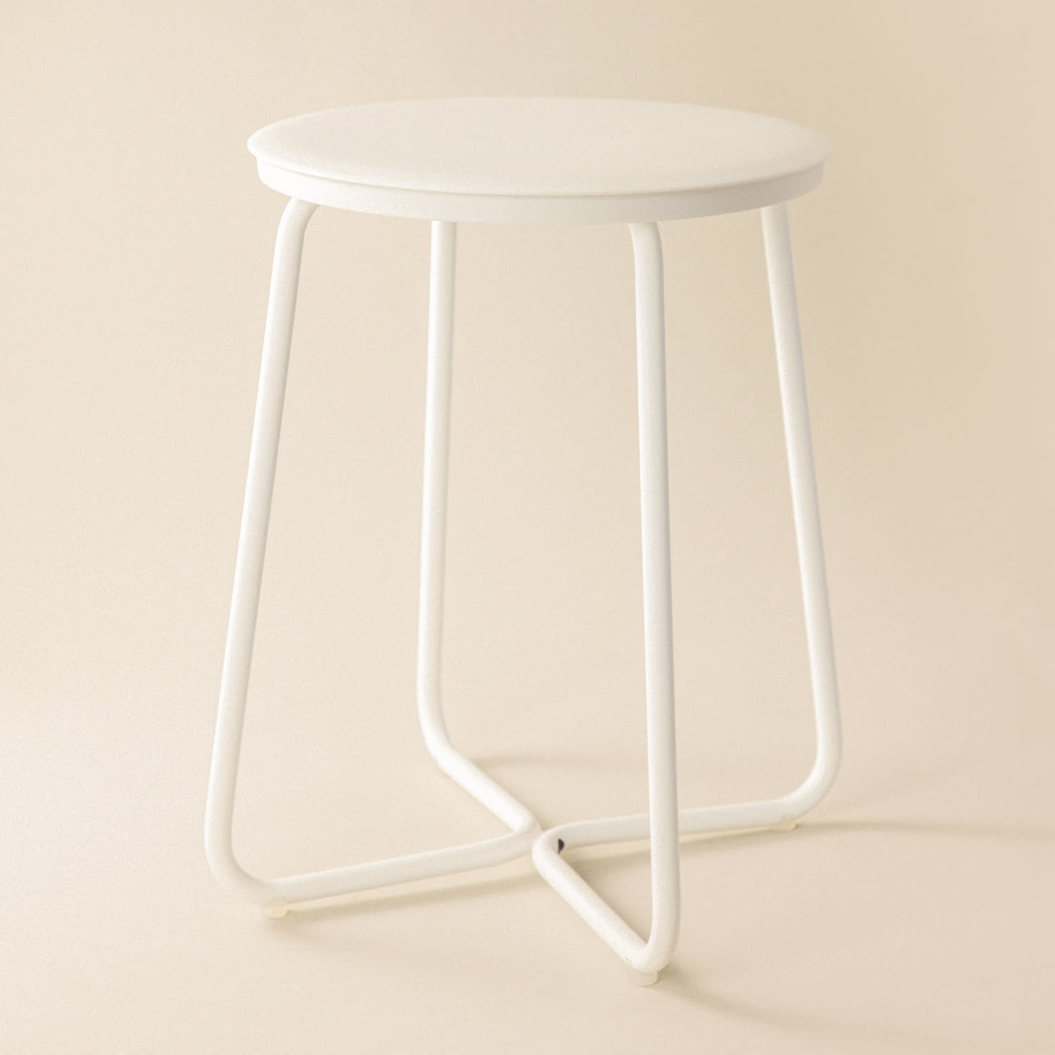 Der Hocker besteht aus Edelstahl und ist mit einer matten weißen Farbe beschichtet. Produkt mit 10 Jahren Garantie.